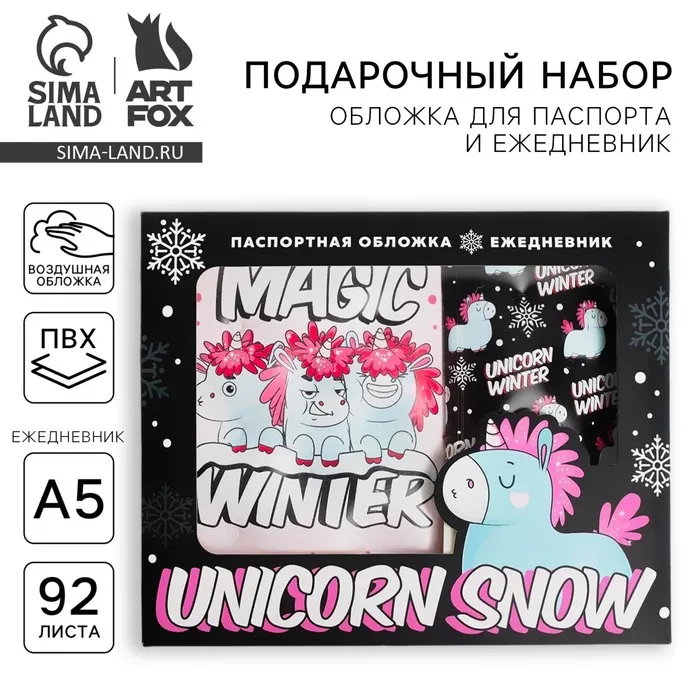 Подарочный набор новогодний, обложка на паспорт, и ежедневник антистресс, Unicorn snow — Характеристики
