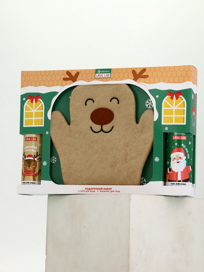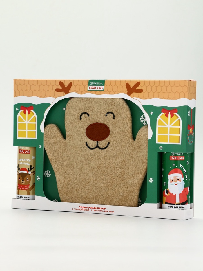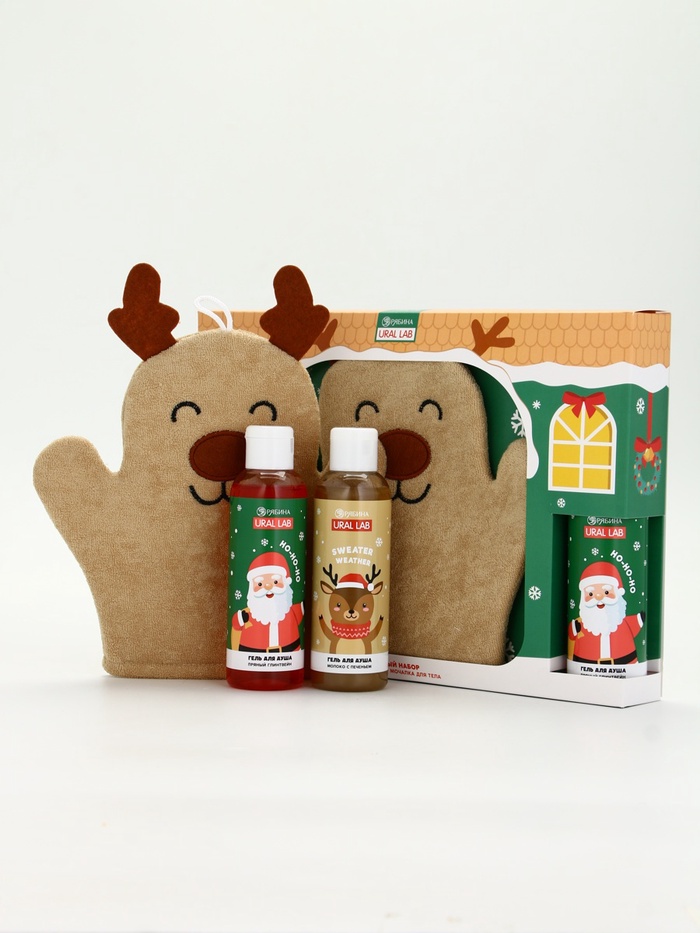 Подарочный набор новогодний «Олень», гель для душа 2 шт. х150 мл, мочалка, URAL LAB — Характеристики