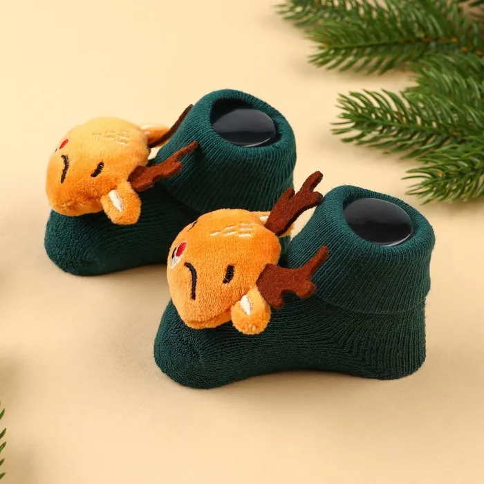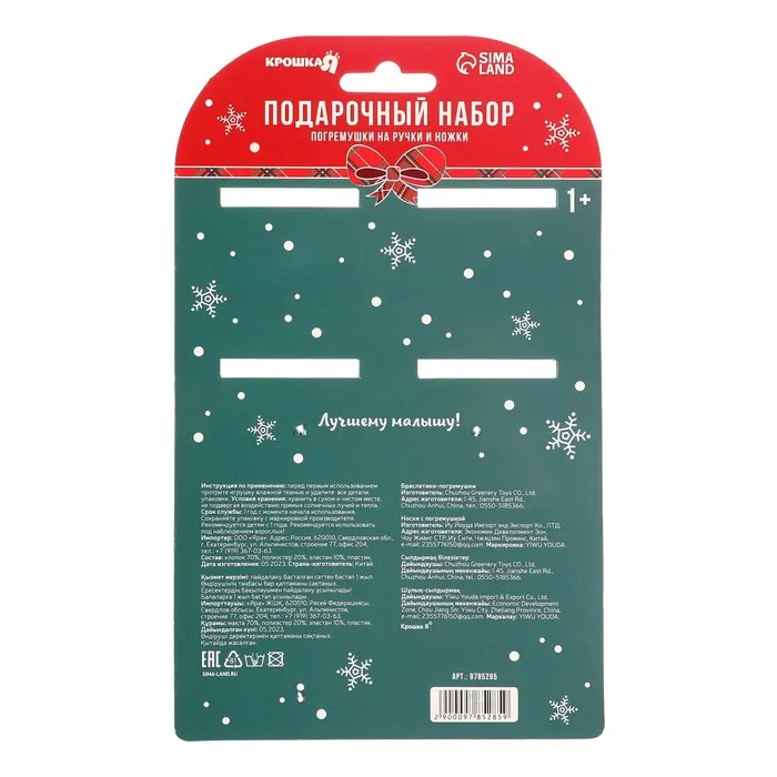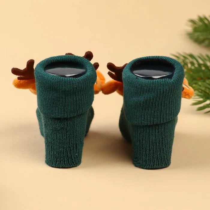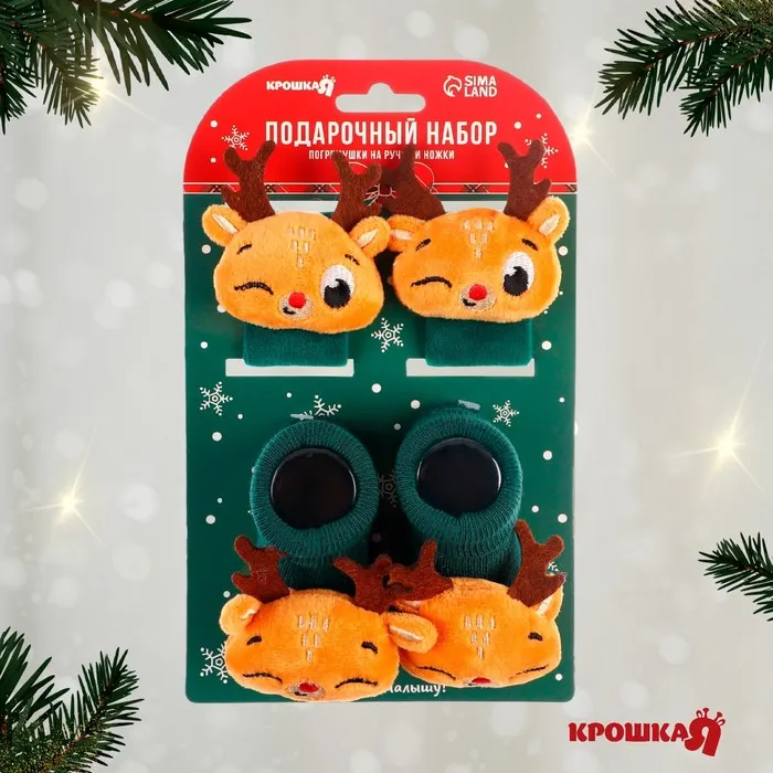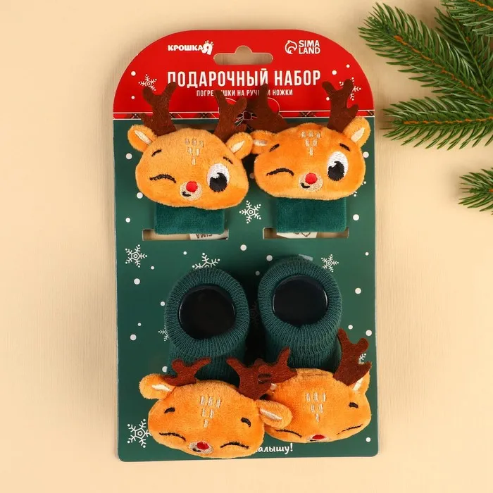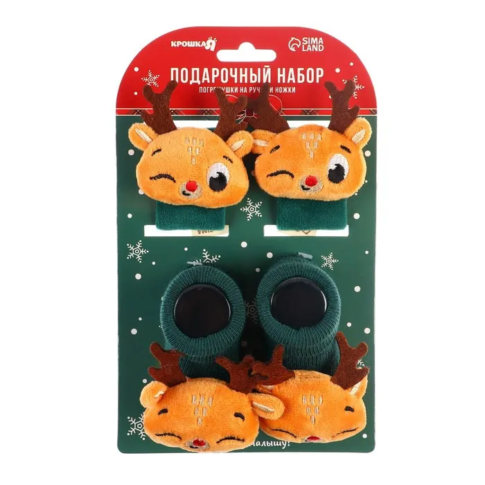 Подарочный набор новогодний «Оленята», браслеты- погремушки, носочки - погремушки, зеленый, Крошка Я — Характеристики