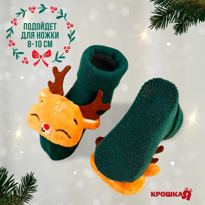 Носочки погремушки со звуковым эффектом не только согреют ножки вашего малыша, но и привлекут его внимание яркими цветами, а также звоном погремушек. Малыш сможет до них дотянуться, потрогать ручками или просто погреметь ими, подергав ножками. Малыш играет и развивает не только мышцы, но и координацию, моторику, внимание, зрение, слуховое восприятие. Милые игрушки пробуждают его стремление исследовать мир вокруг себя. Изготовлены из качественного и безопасного для здоровья детей материала, который не выцветает. Станут отличным подарком вашим близким..