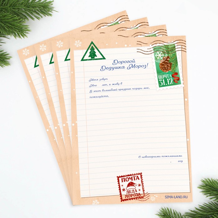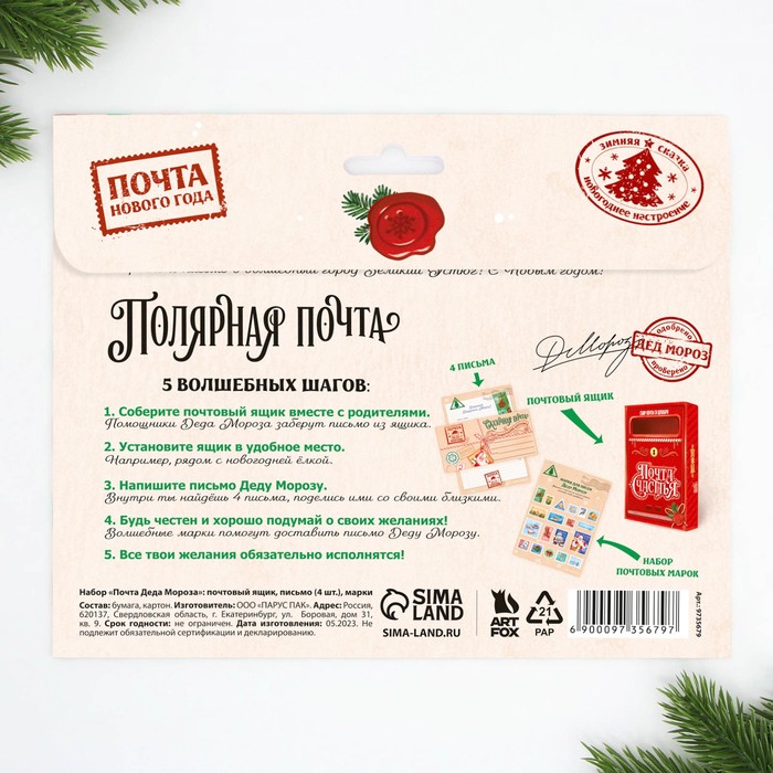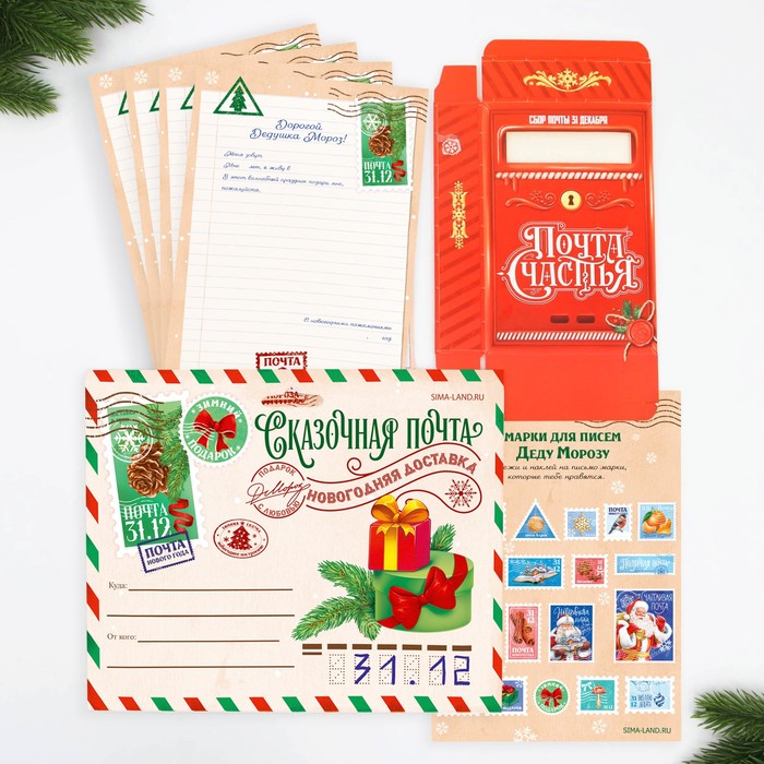 Подарочный набор новогодний, письмо Деду Морозу 4 шт., почтовый ящик, марки «Сказочная почта» — Характеристики