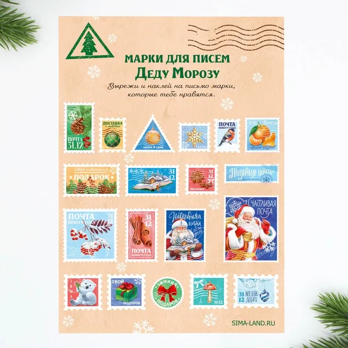 Волшебные марки помогут доставить письмо Деду Морозу.