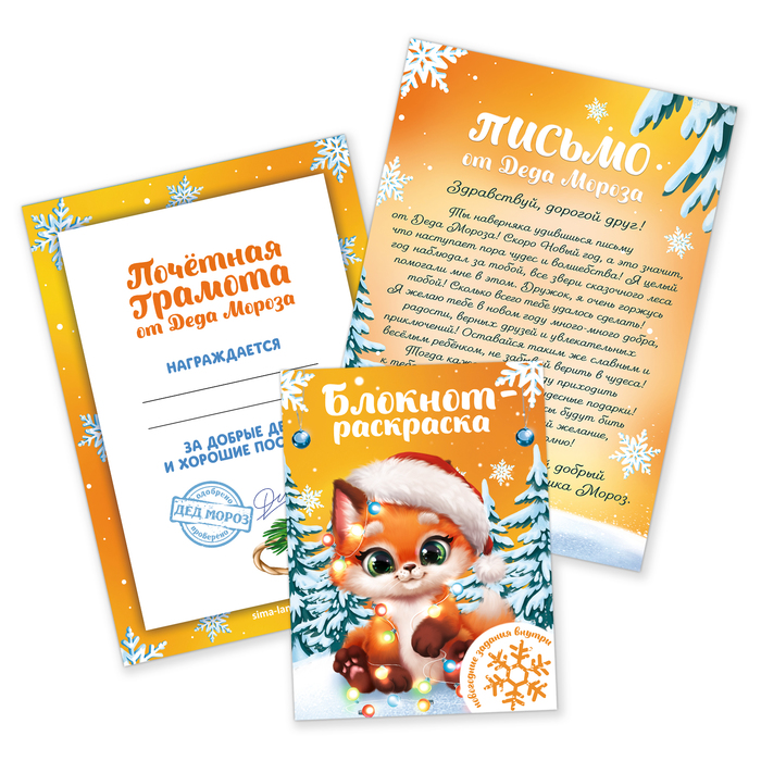 Подарочный набор новогодний, письмо от Деда Мороза, блокнот-раскраска, грамота «Новогодние зверята» — Характеристики