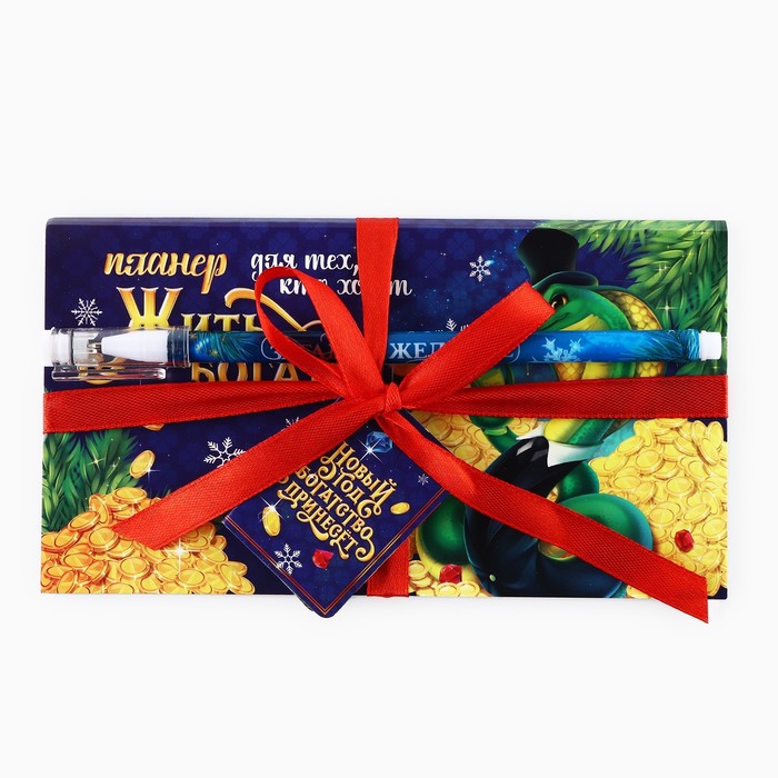 Подарочный набор новогодний, планер и ручка «Жить богато» — Характеристики