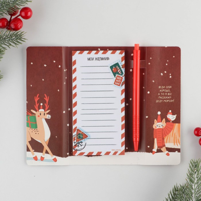 Подарочный набор новогодний, планер-стикеры 30 листов, ручка пластик «Новогодняя почта» — Характеристики