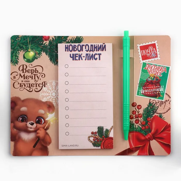 Подарочный набор новогодний, планер-стикеры 30 листов, ручка пластик «Новогодняя почта от Деда Мороза» — Характеристики