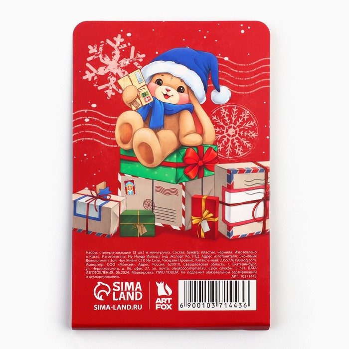 Подарочный набор новогодний, ручка и Стикеры для заметок, с липким краем, 30 листов, 5 шт. 20 листов, мини «Сказочная почта»