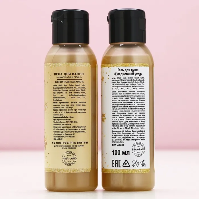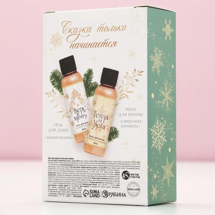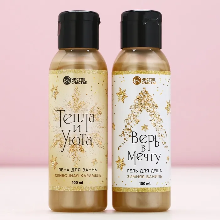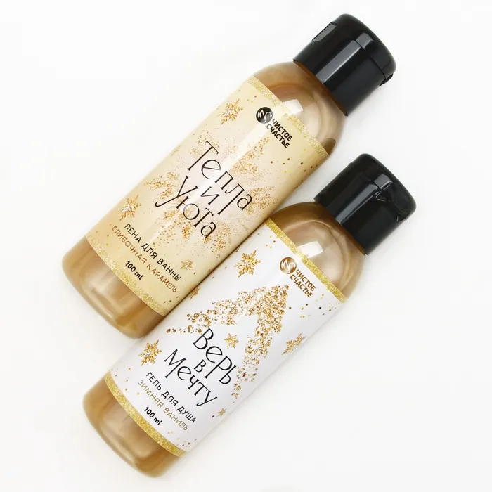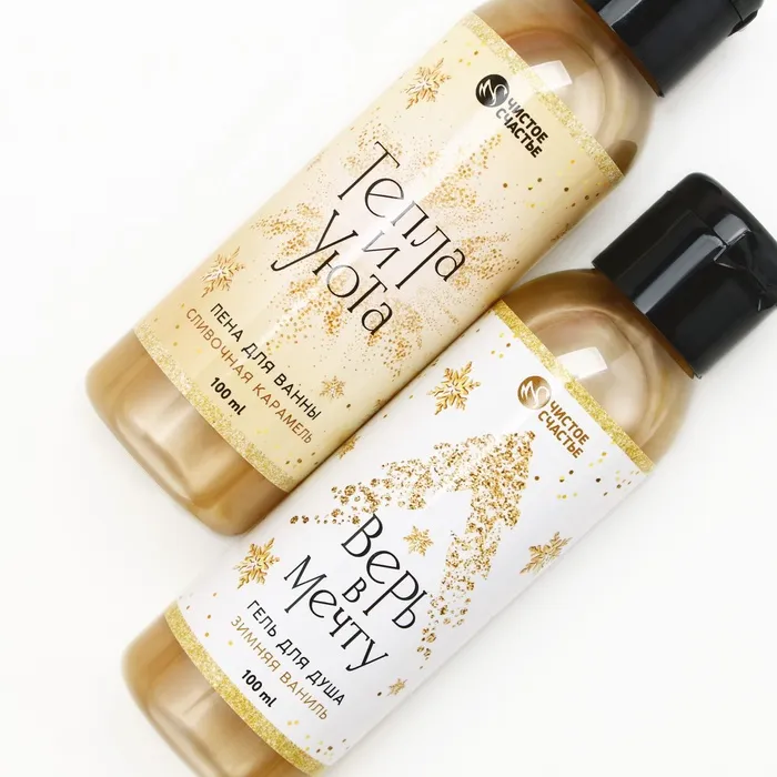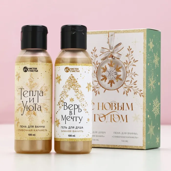 Подарочный набор новогодний «С праздником», гель для душа, пена для ванны, 2×100 мл, Чистое счастье — Характеристики