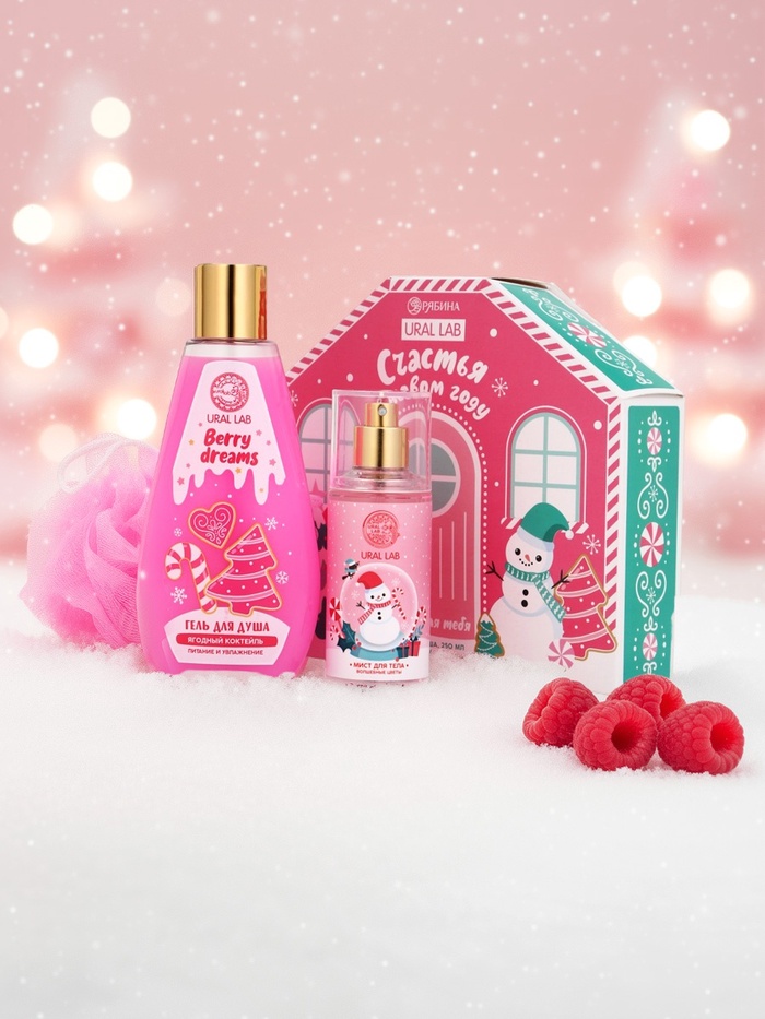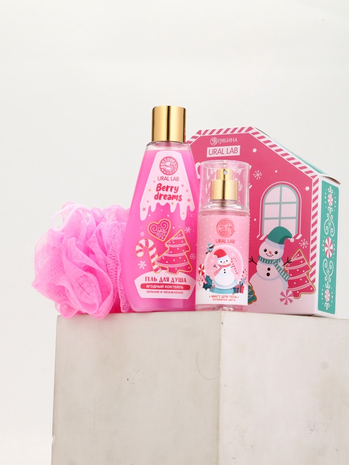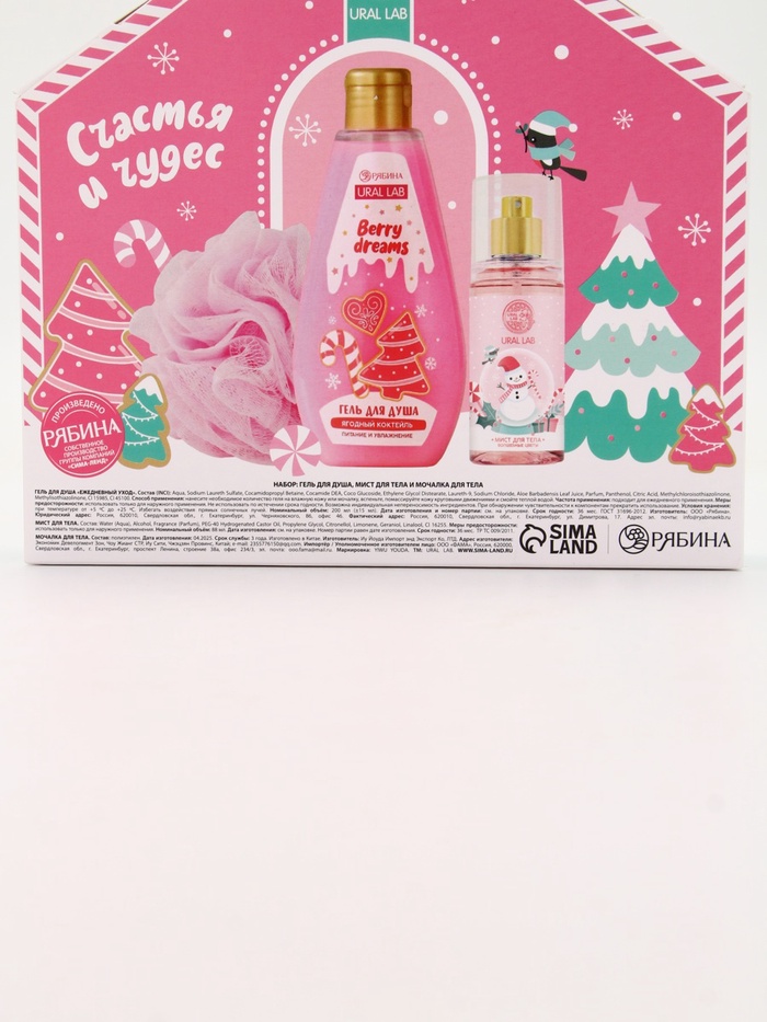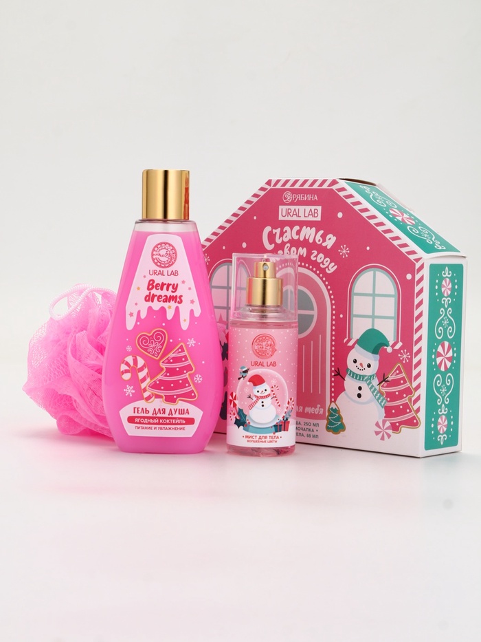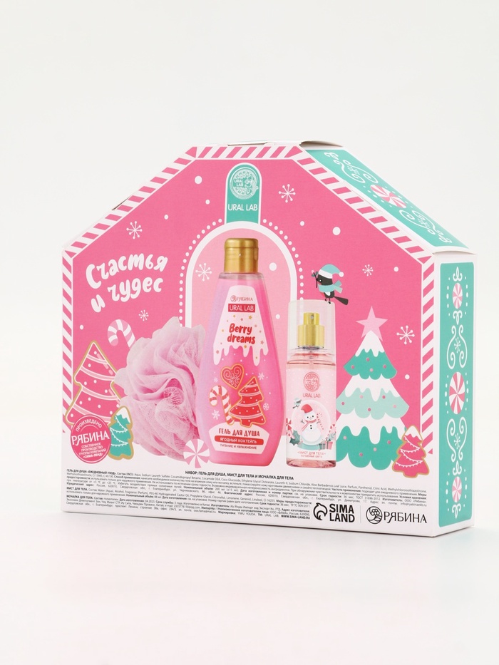 Подарочный набор новогодний «Счастья в Новом году», гель для душа, мочалка и мист, URAL LAB — Характеристики