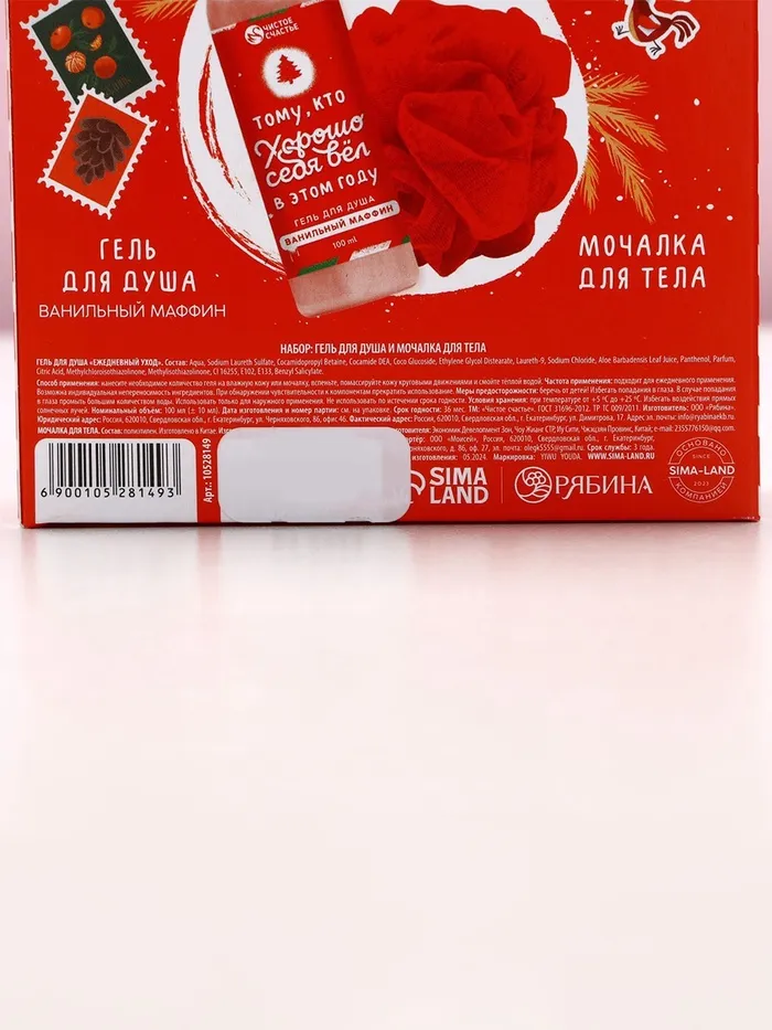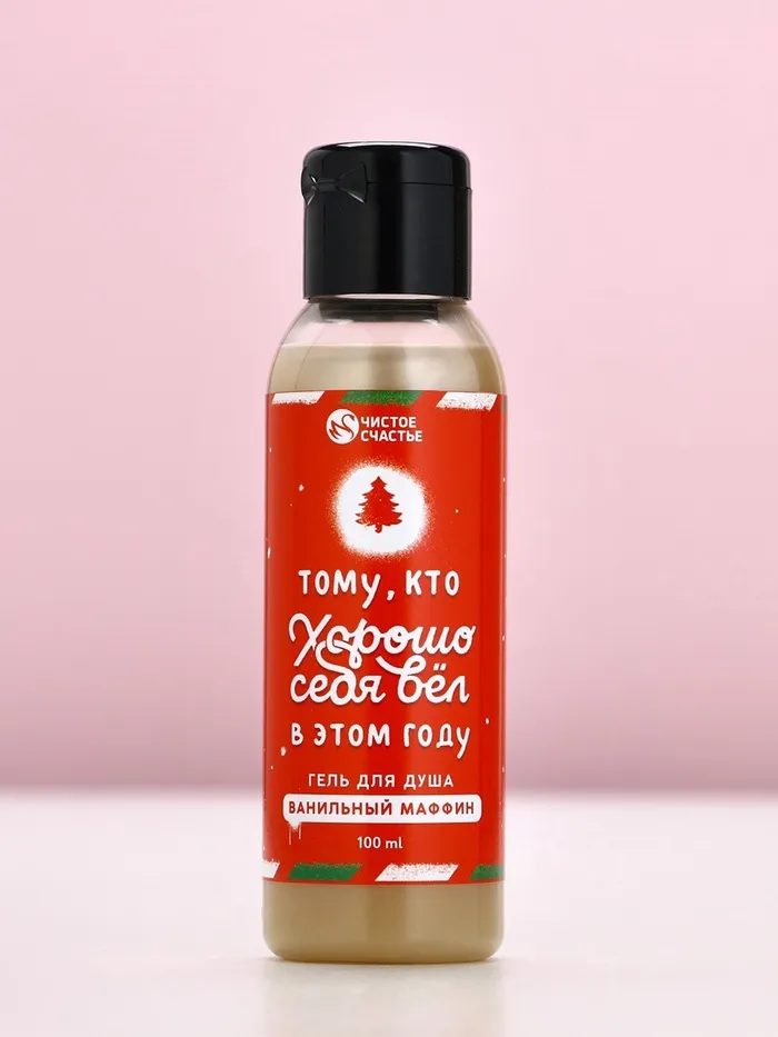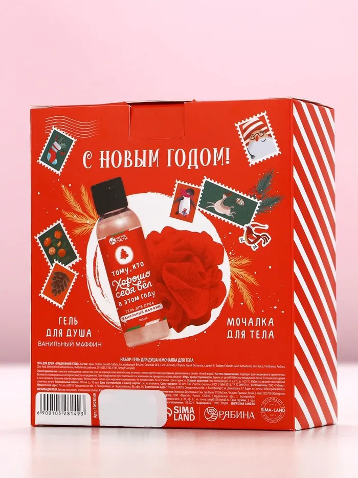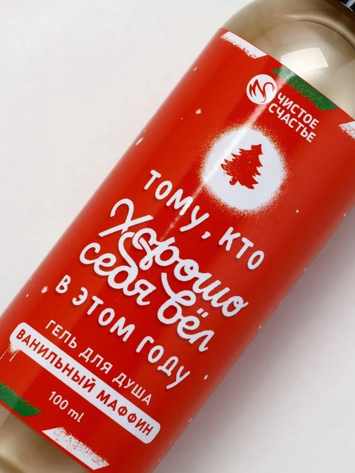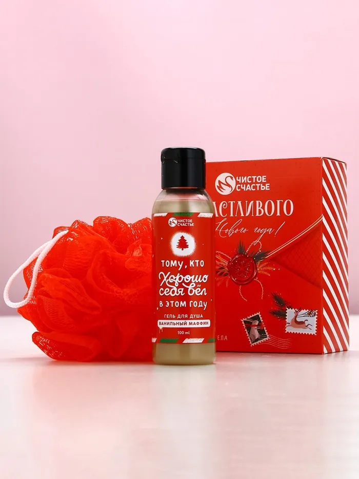 Подарочный набор новогодний «Счастливого праздника», гель для душа 100 мл и мочалка для тела, Чистое счастье — Характеристики