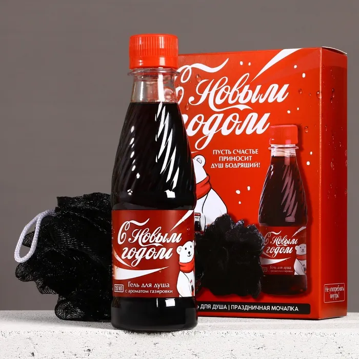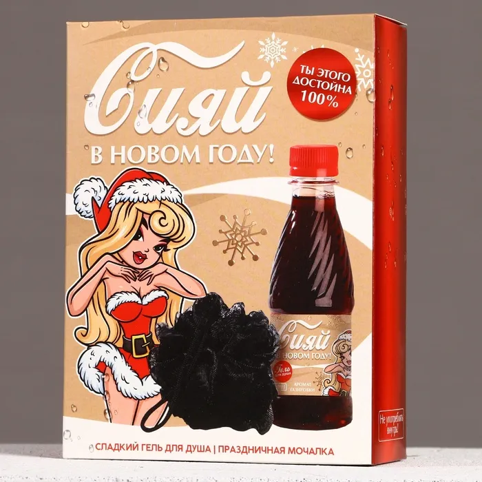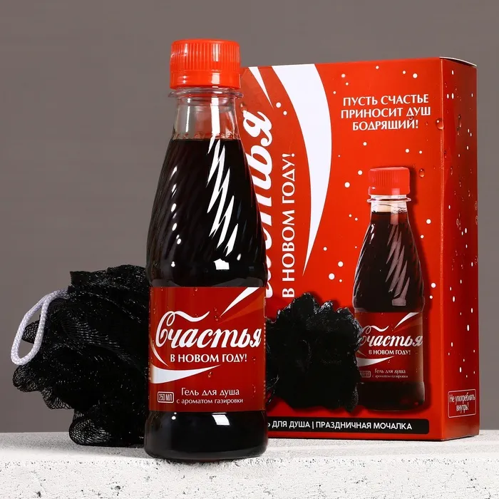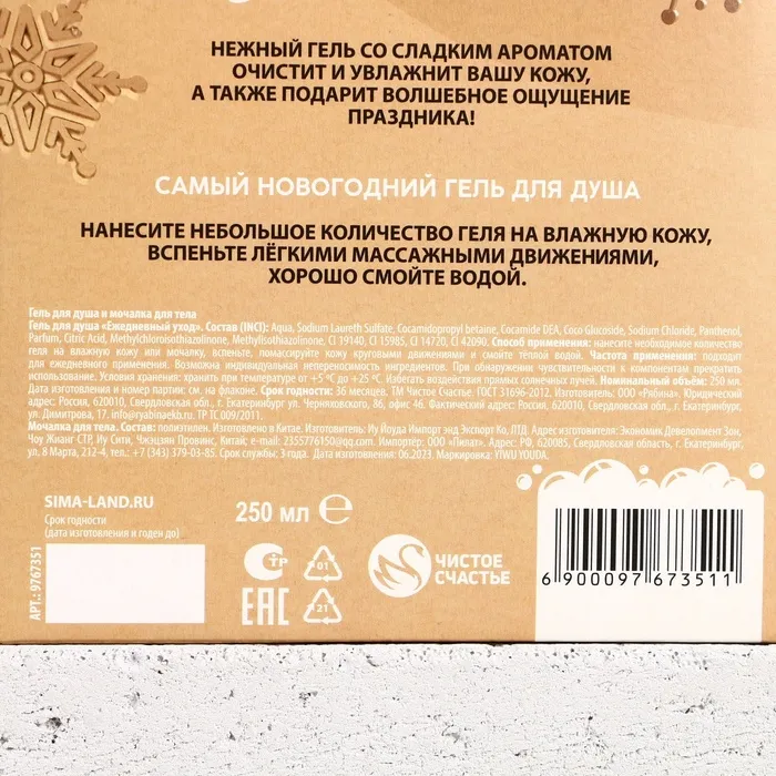 Подарочный набор новогодний «Сияй», гель для душа 250 мл и мочалка для тела, Чистое счастье — Характеристики