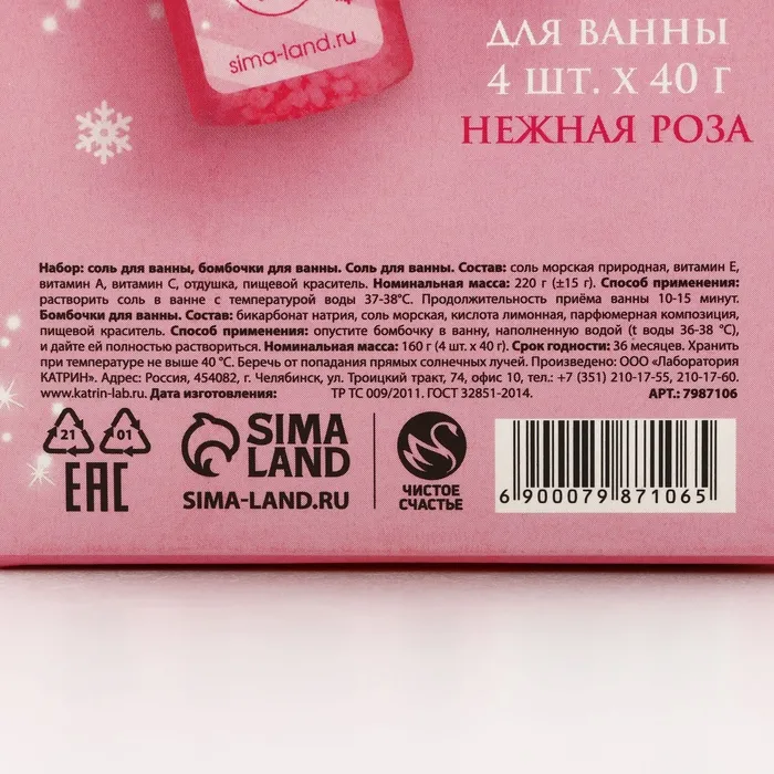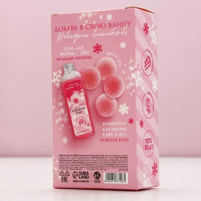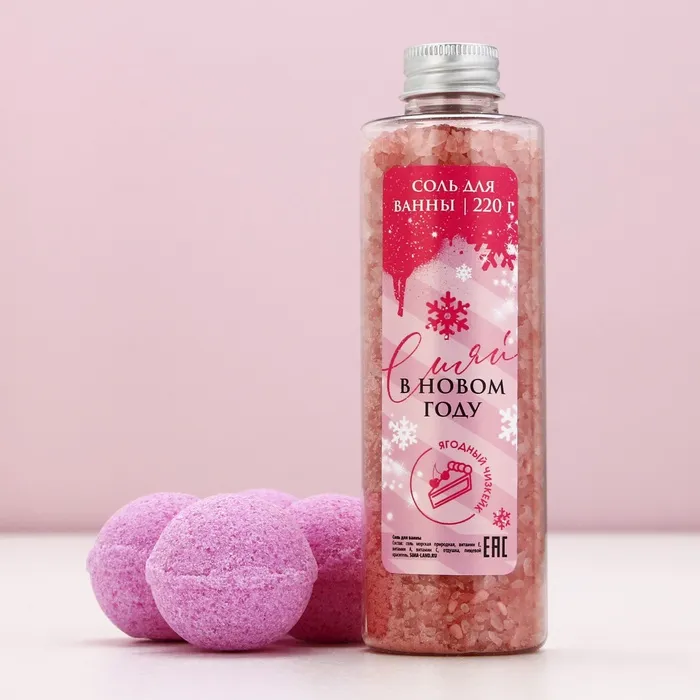 Подарочный набор новогодний «Сияй в Новом году», соль для ванны 220 г и бомбочки для ванны 4×40 г, Чистое счастье — Характеристики