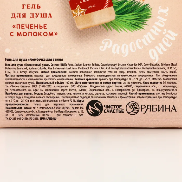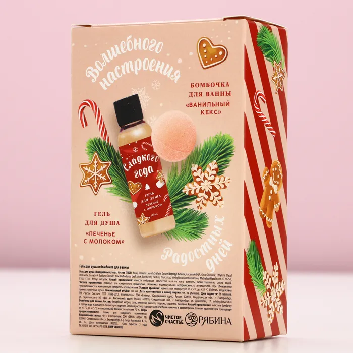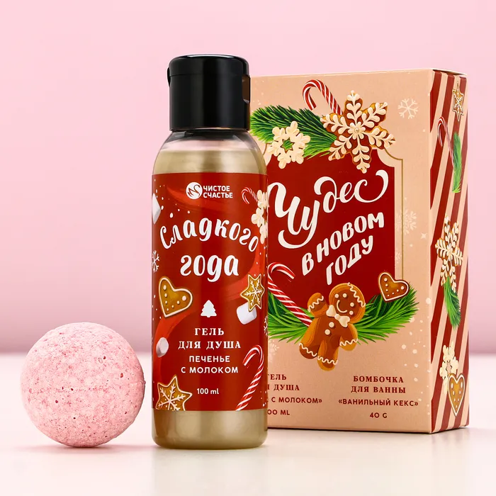 Подарочный набор новогодний «Сладкого года»: гель для душа 100 мл и бомбочка для ванны 40 г, Чистое счастье — Характеристики