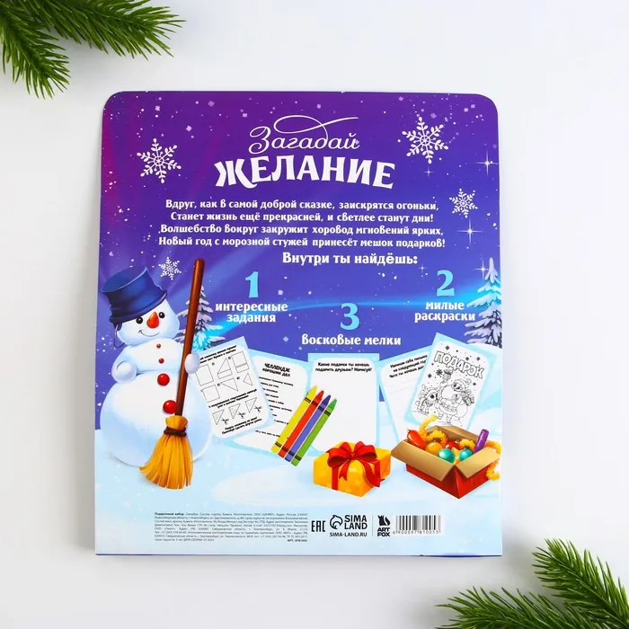 Подарочный набор новогодний, смешбук и восковые мелки «Время для праздника» — Характеристики