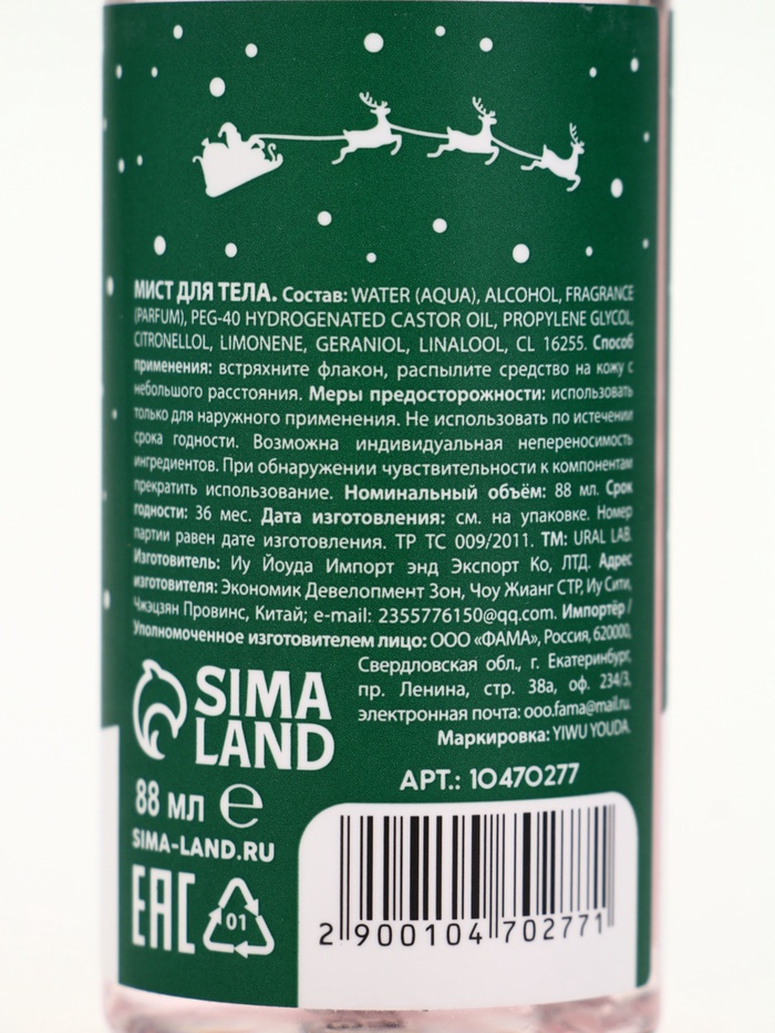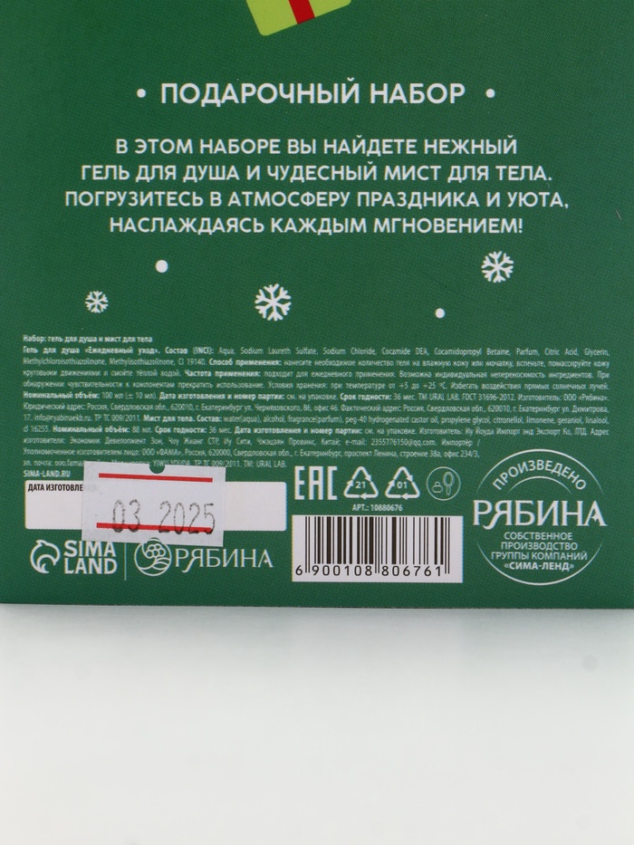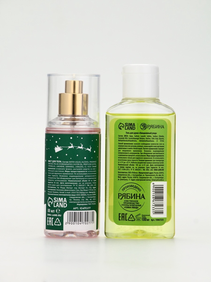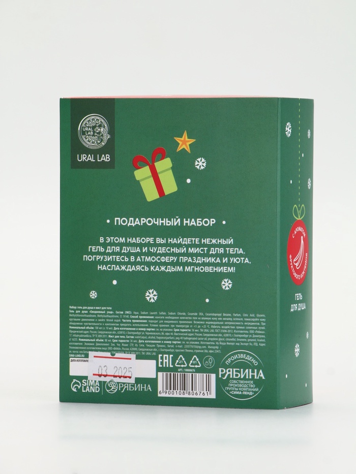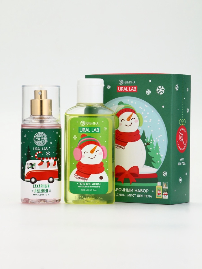 Подарочный набор новогодний «Снеговичок», гель для душа 100 мл и мист для тела, URAL LAB — Характеристики