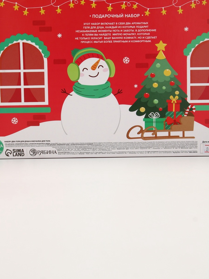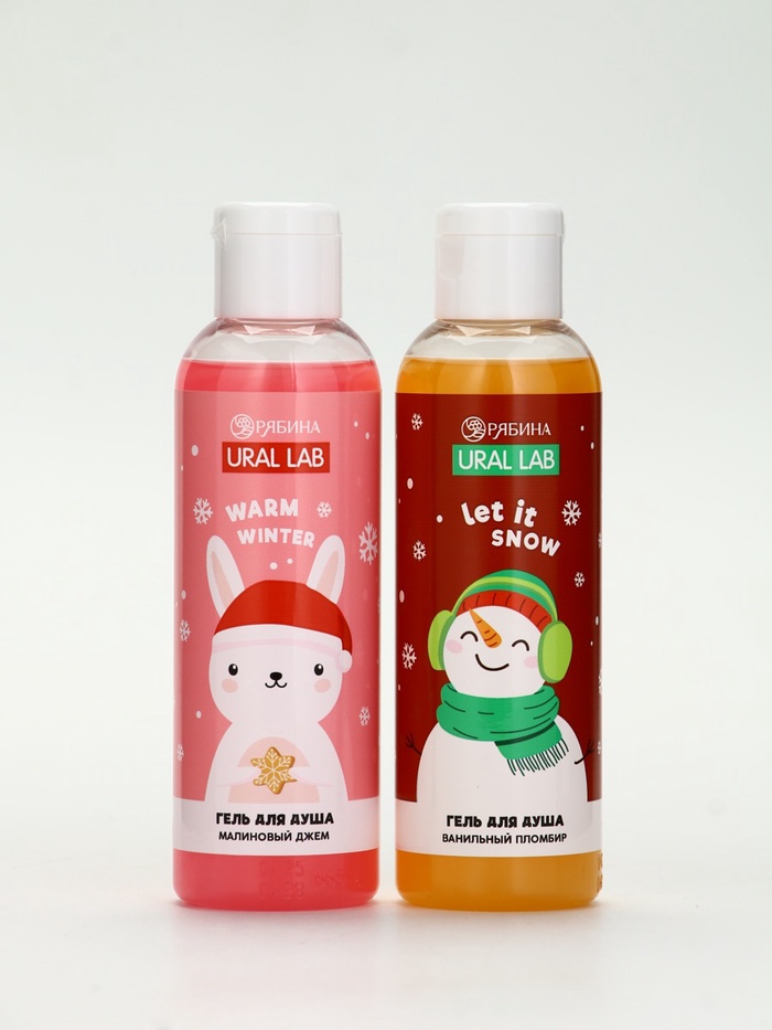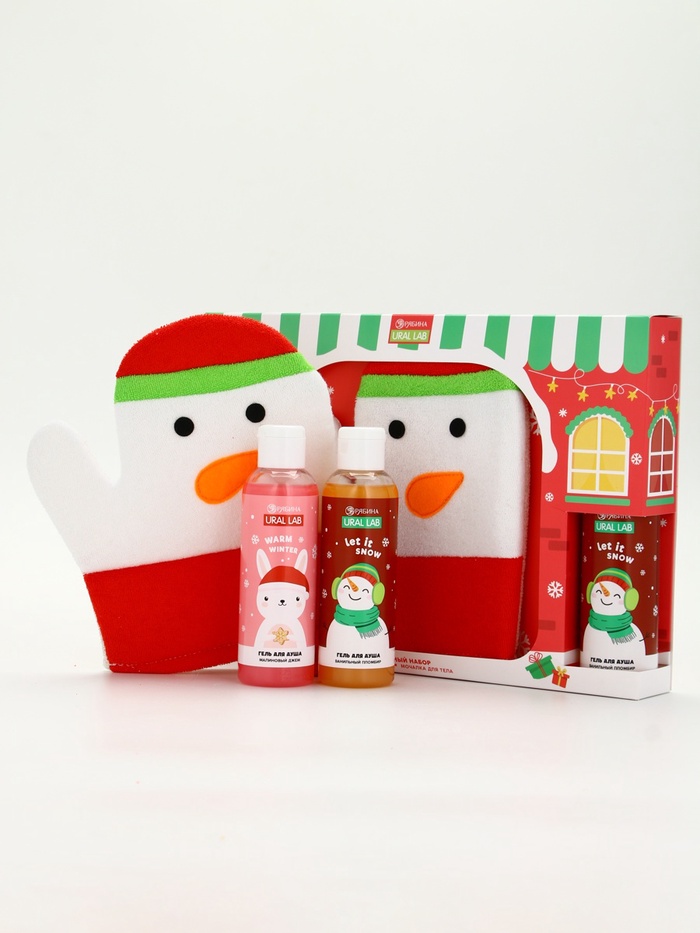 Подарочный набор новогодний «Снеговик», гель для душа 2 шт. × 150 мл, мочалка, URAL LAB — Характеристики