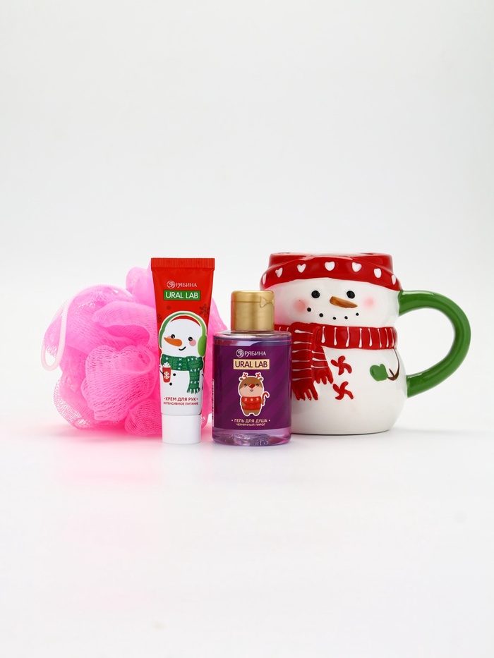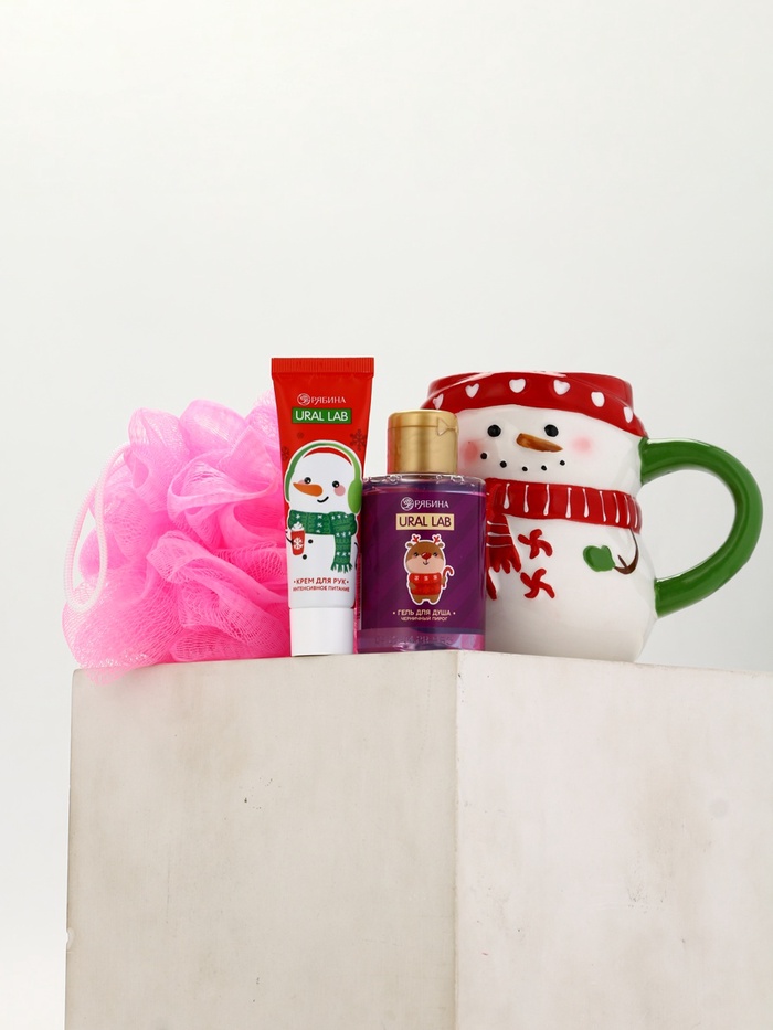 Подарочный набор новогодний «Снеговик», гель для душа, кружка, мочалка и крем для рук, URAL LAB — Характеристики
