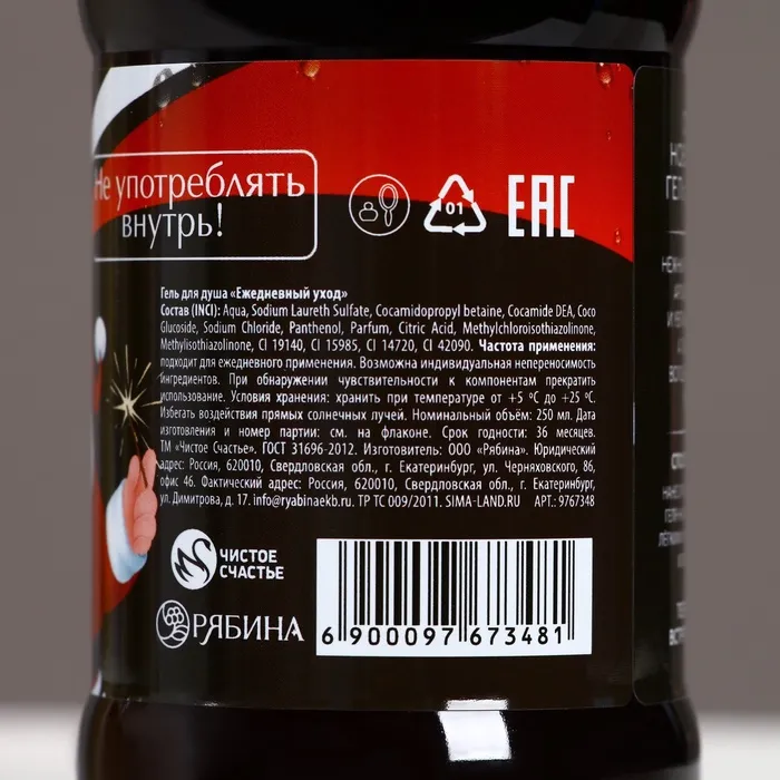Подарочный набор новогодний «Спокойствие!»: гель для душа 250 мл и мочалка для тела, Чистое счастье — Характеристики