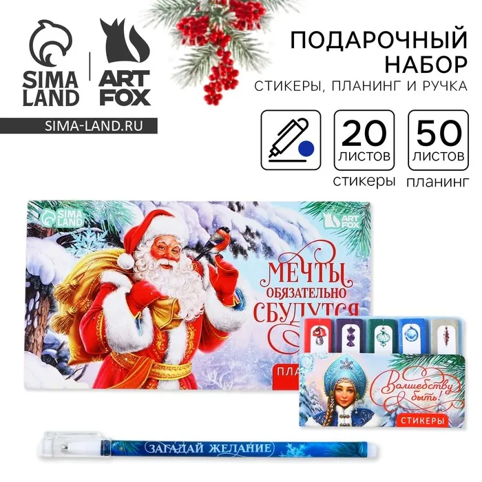 Подарочный набор новогодний, стикеры планер и ручка «Мечты обязательно сбудутся» — Характеристики
