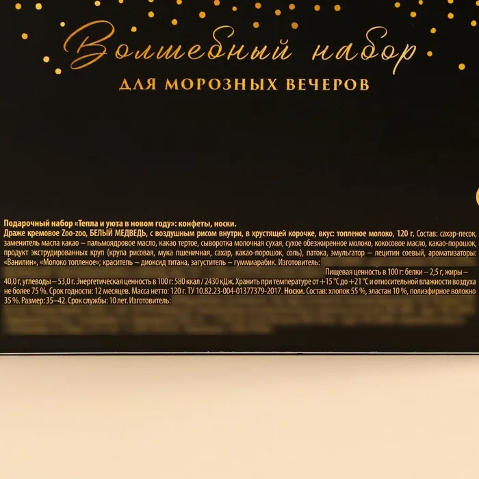 Состав: сахар-песок, заменитель масла какао – пальмоядровое масло, какао тёртое, сыворотка молочная сухая, сухое обезжиренное молоко, кокосовое масло, какао-порошок, продукт экструдированных круп (крупа рисовая, мука пшеничная, сахар, какао-порошок, соль), патока, эмульгатор – лецитин соевый, ароматизаторы: «Ванилин», «Молоко топлёное»; краситель – диоксид титана, загуститель – гуммиарабик.