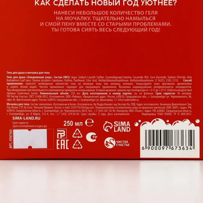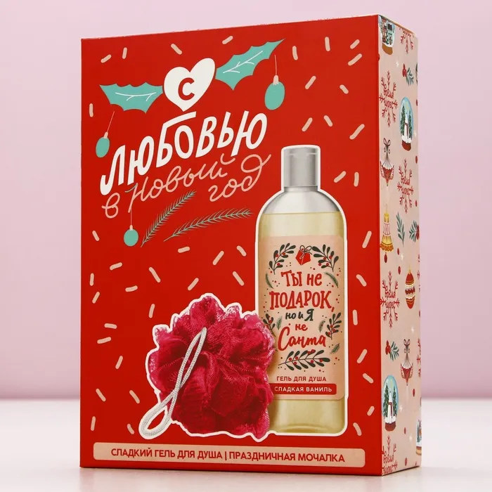 Подарочный набор новогодний «Ты не подарок, но и я не Санта», гель для душа 250 мл, мочалка, Чистое счастье — Характеристики