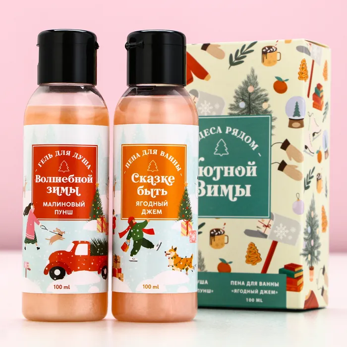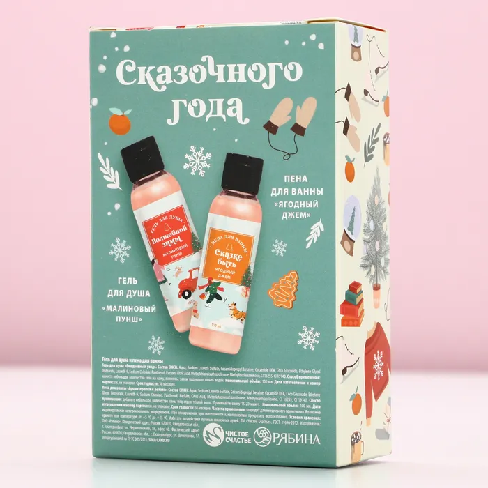 Подарочный набор новогодний «Уютной зимы», гель для душа, пена для ванны, 2×100 мл, Чистое счастье — Характеристики