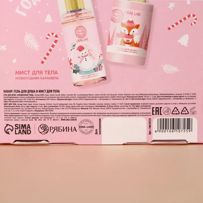 Подарочный набор новогодний URAL LAB «Рождественская почта»: гель для душа 100 мл и мист для тела 88 мл — Характеристики