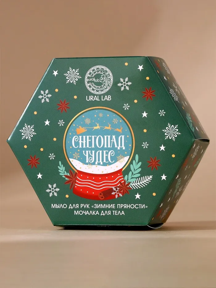 Подарочный набор новогодний URAL LAB «Снегопад чудес»: мыло для рук кусковое 100 г и мочалка для тела — Характеристики