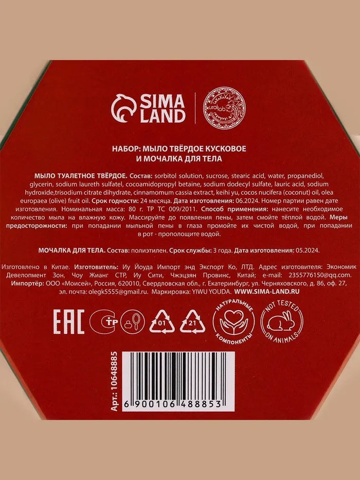 Составляющие набора: Мыло