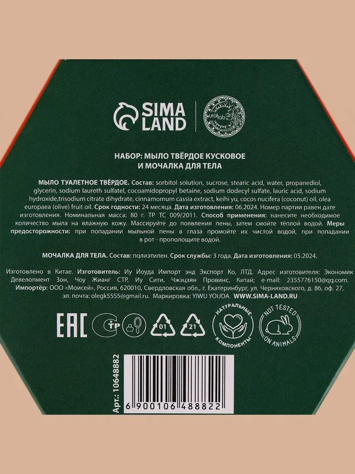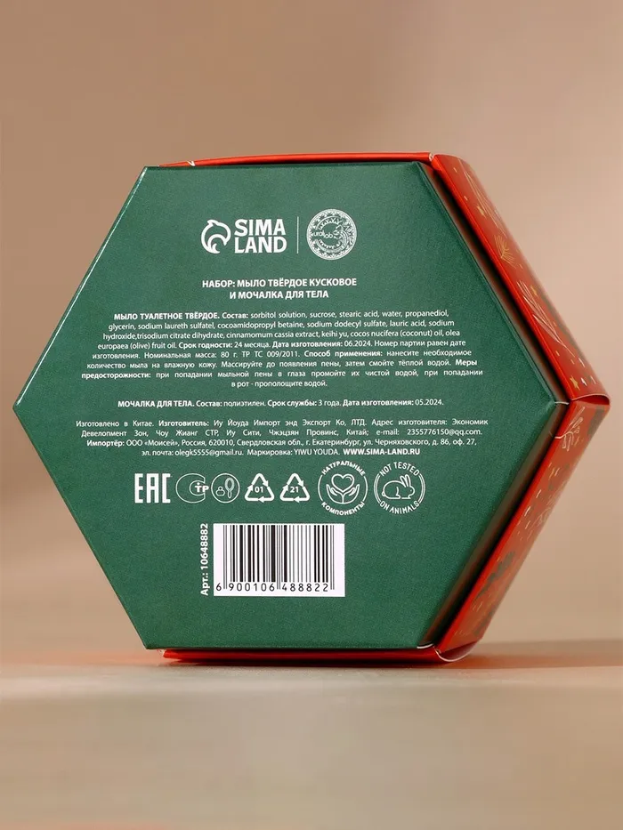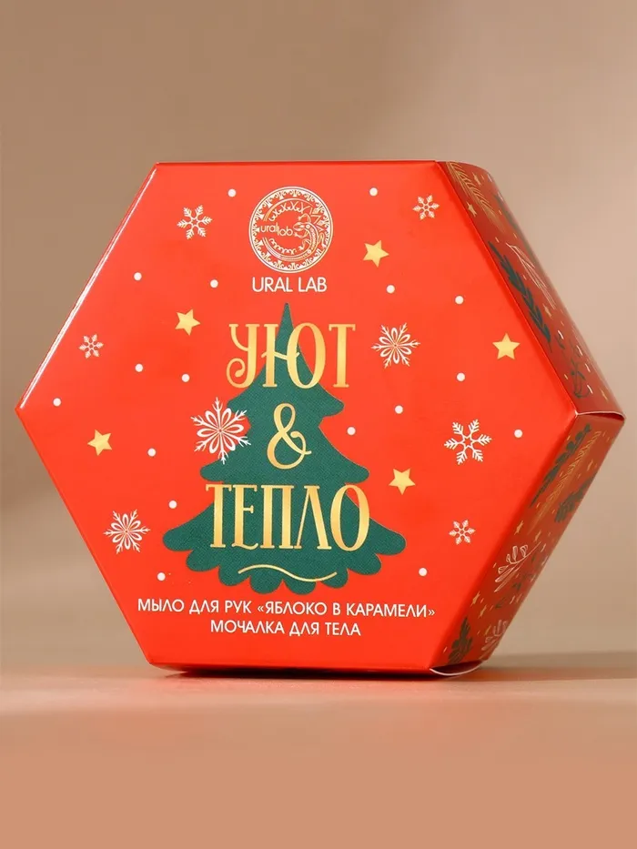 Подарочный набор новогодний URAL LAB «Уют и тепло»: мыло для рук кусковое 100 г и мочалка для тела — Характеристики