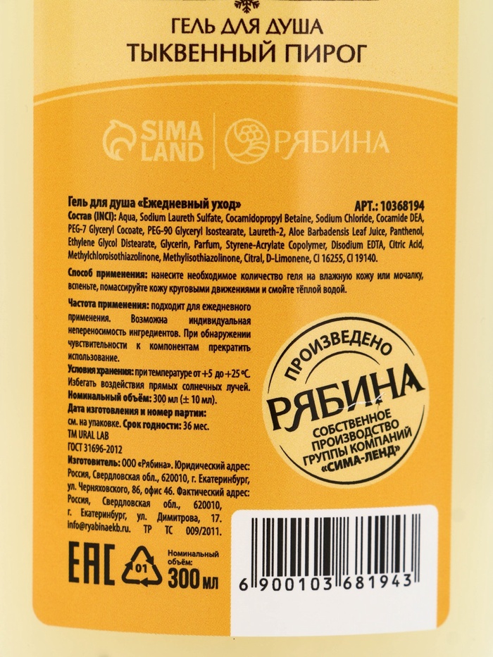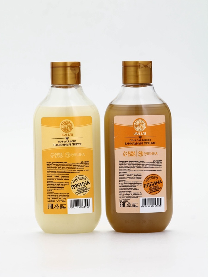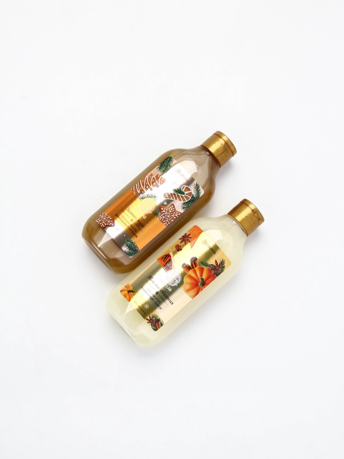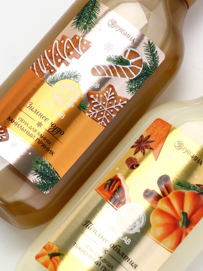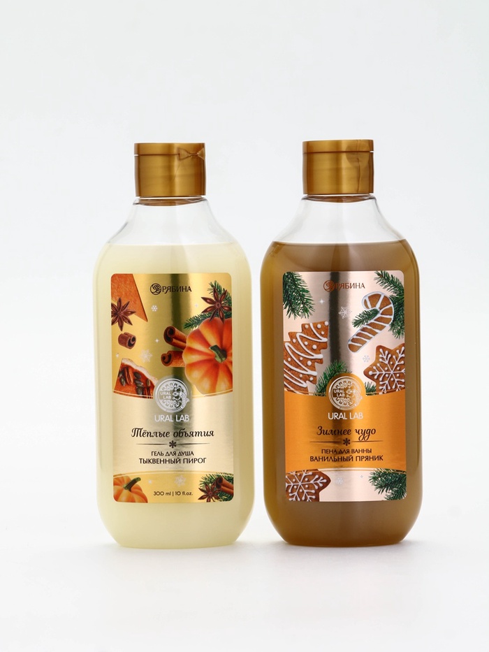 Подарочный набор новогодний в деревянной корзине: гель для душа, пена для ванны и полотенце, аромат тыквенный пирог и ванильный пряник, URAL LAB — Характеристики
