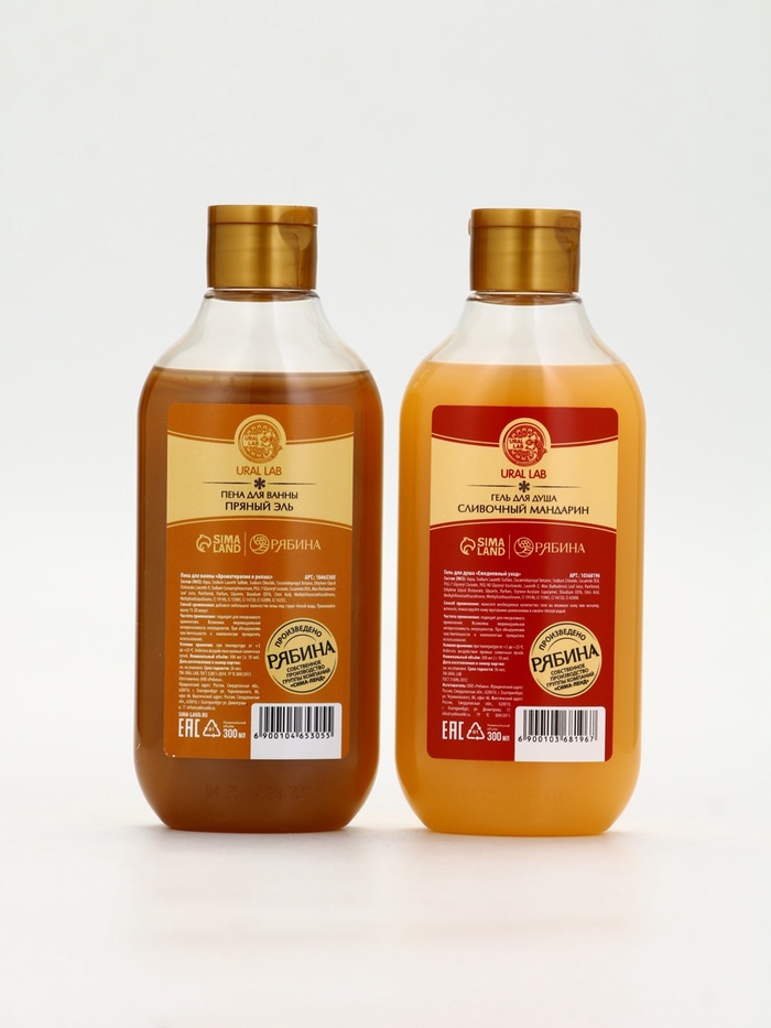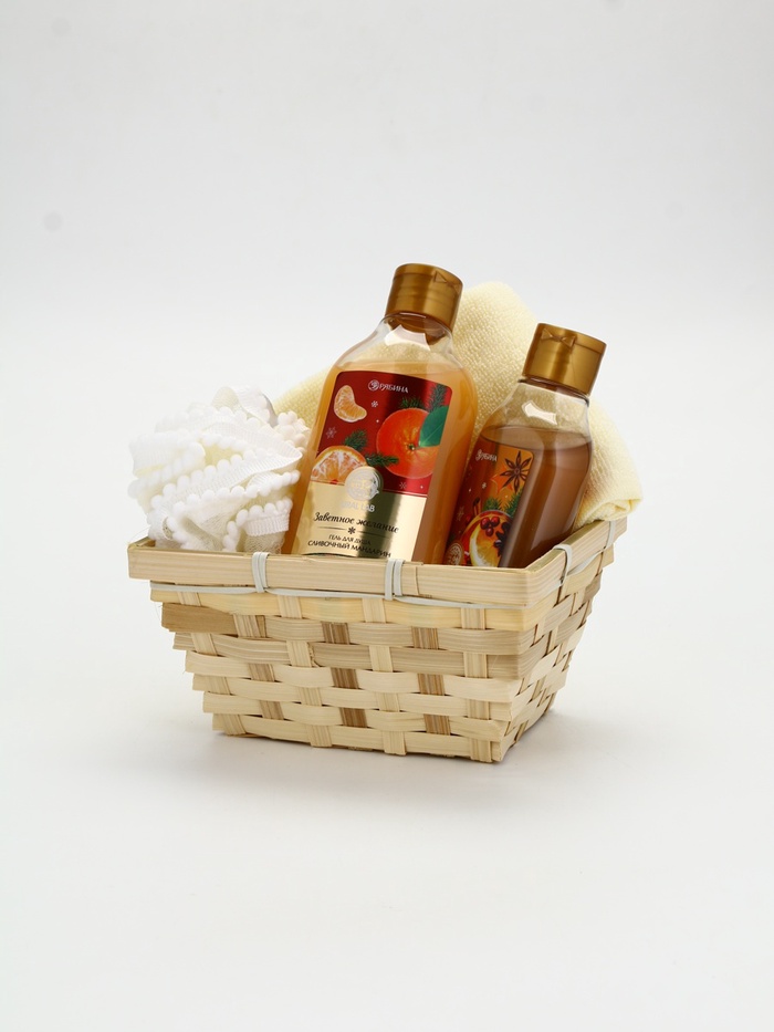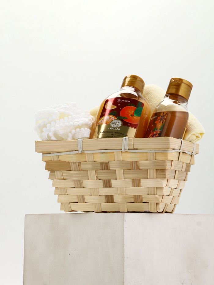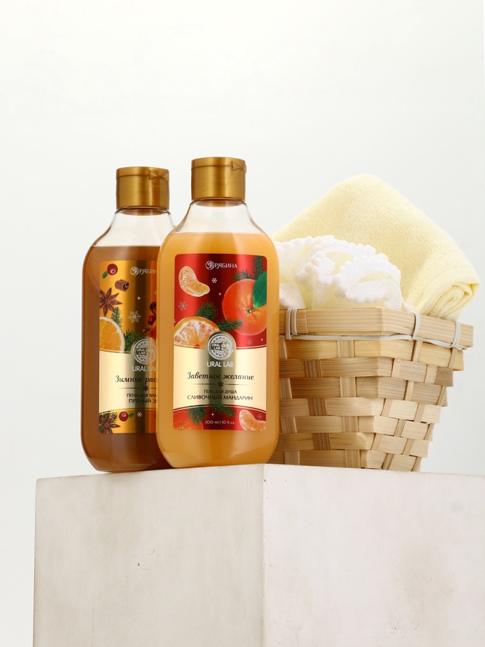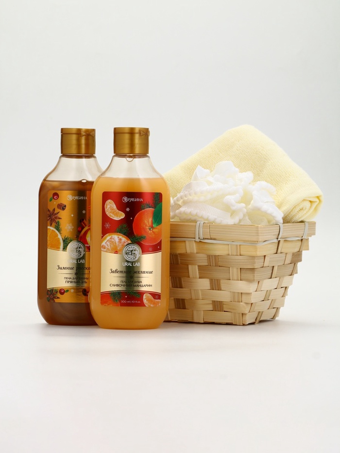 Подарочный набор новогодний в корзине, гель для душа, пена для ванны, мочалка и полотенце, URAL LAB — Характеристики