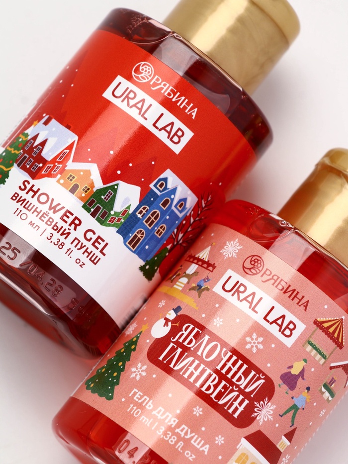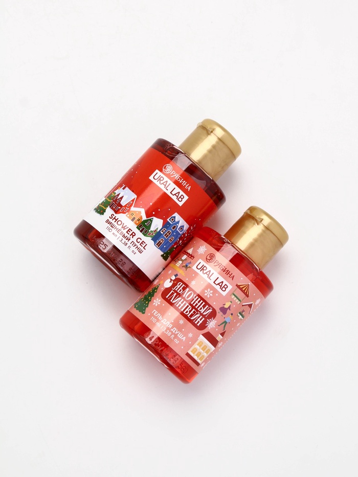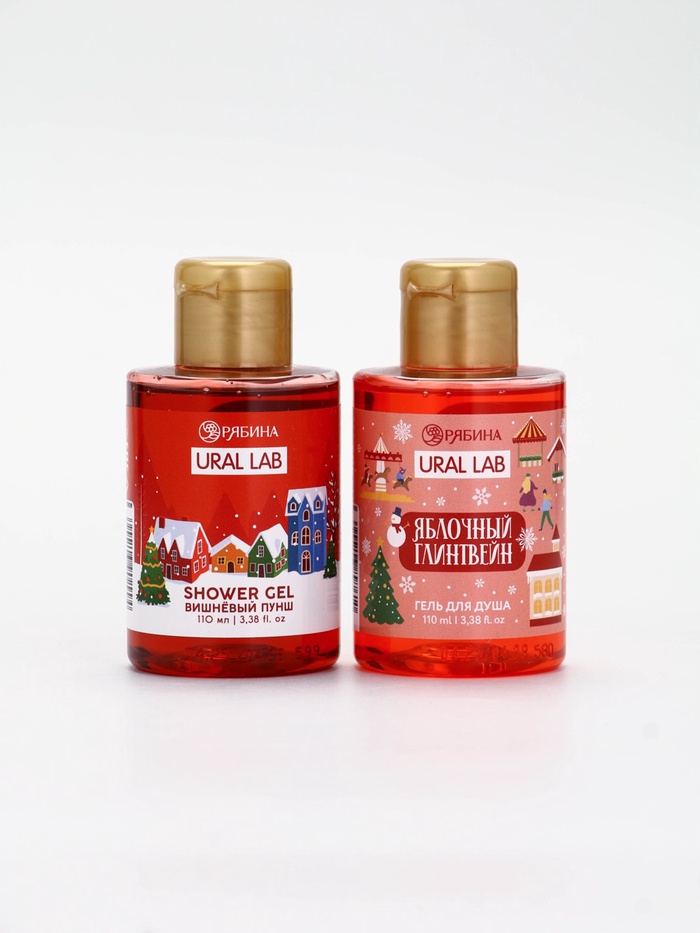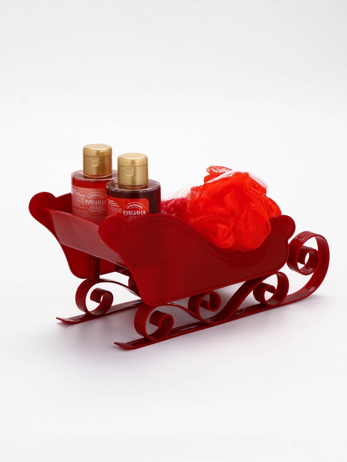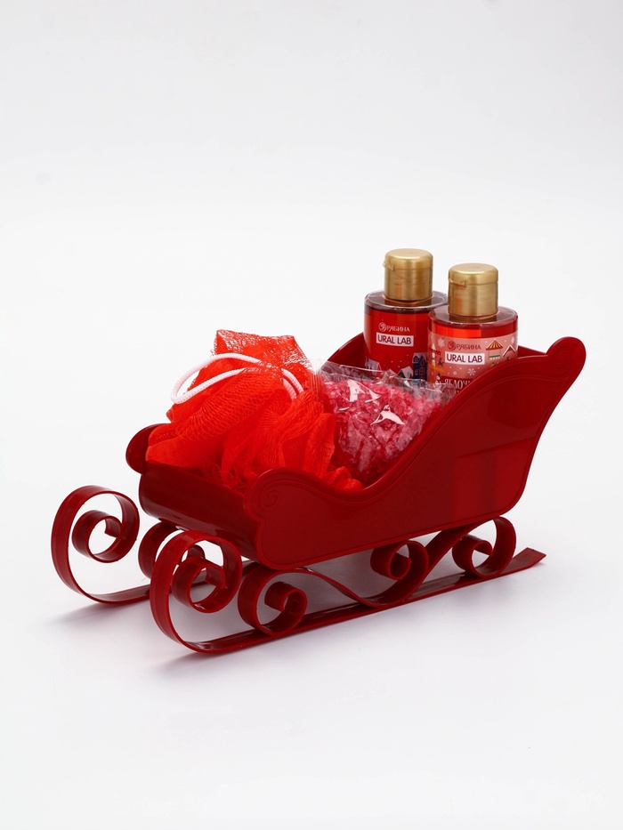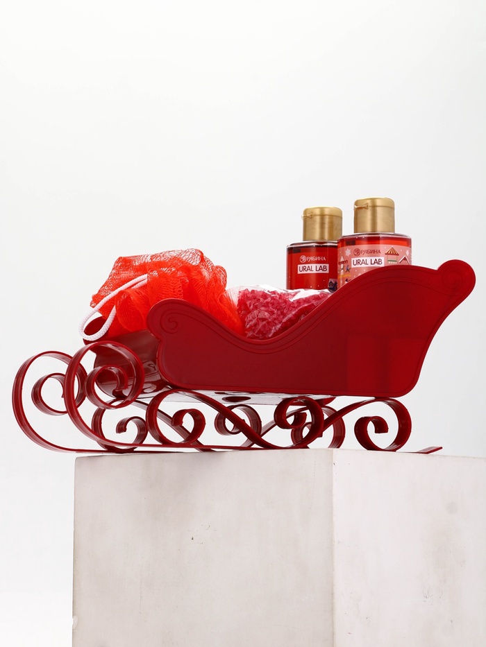 Подарочный набор новогодний в санях: 2 геля для душа, соль для ванны и мочалка, URAL LAB — Характеристики