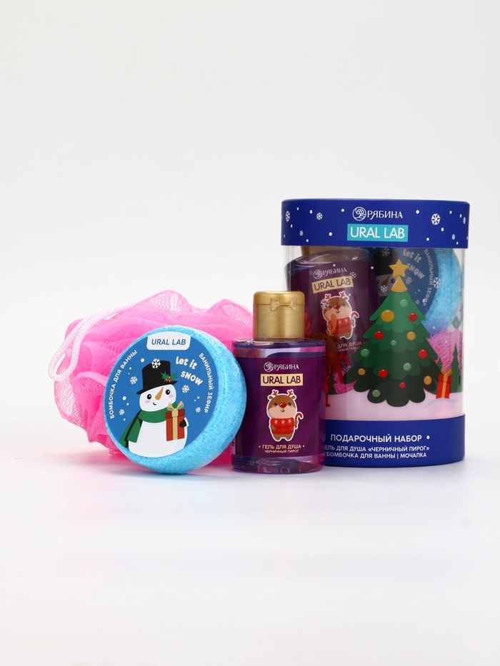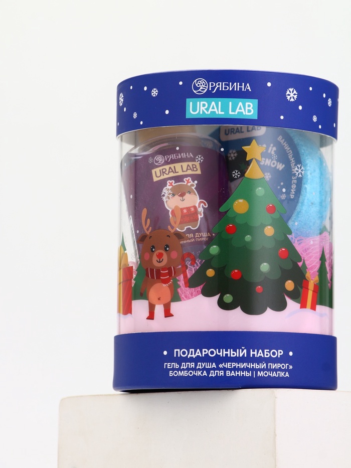 Подарочный набор новогодний в тубусе «Медвежонок», бомбочка, гель, мочалка, URAL LAB — Характеристики