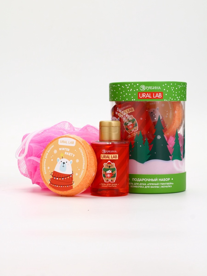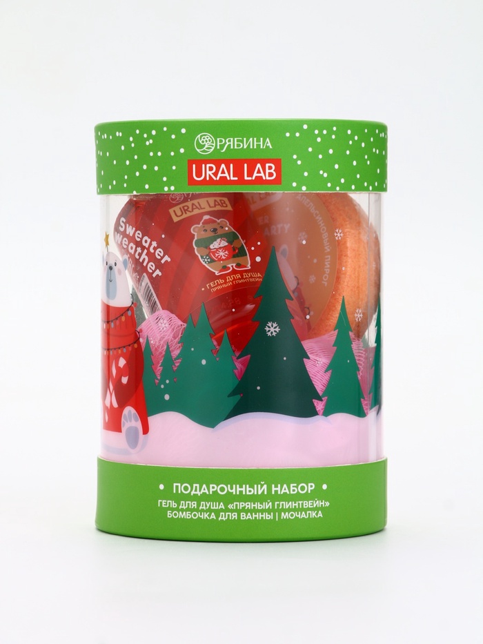Подарочный набор новогодний в тубусе «Снеговичок», бомбочка, гель, мочалка, URAL LAB — Характеристики