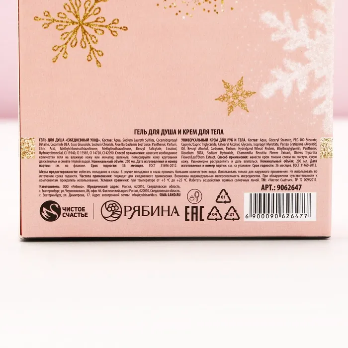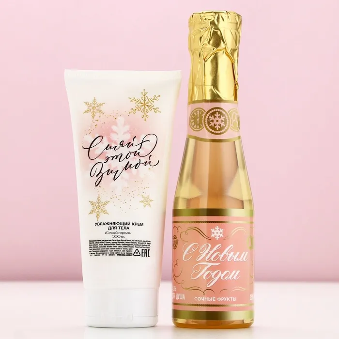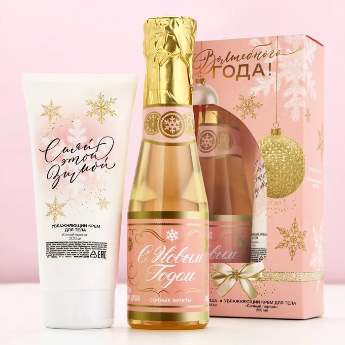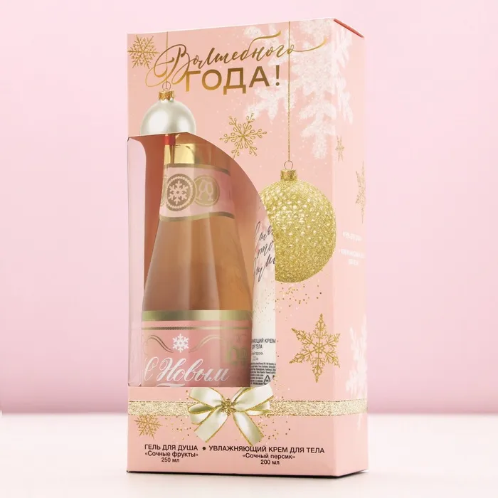 Подарочный набор новогодний «Волшебного года»: гель для душа шампанское 250 мл и крем для тела 200 мл, Чистое счастье — Характеристики