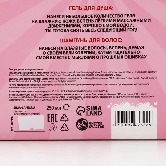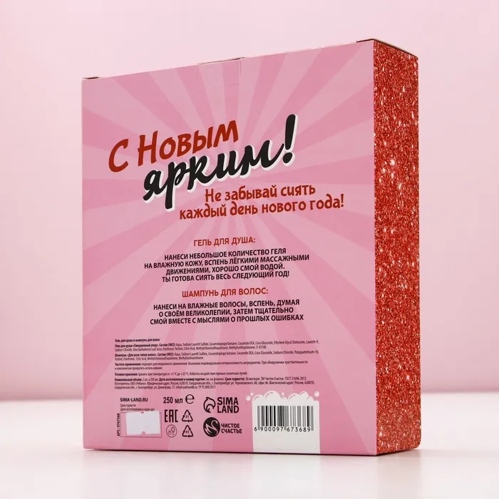 Подарочный набор новогодний «Время сиять»: гель для душа и шампунь для волос, 2×250 мл, Чистое счастье — Характеристики