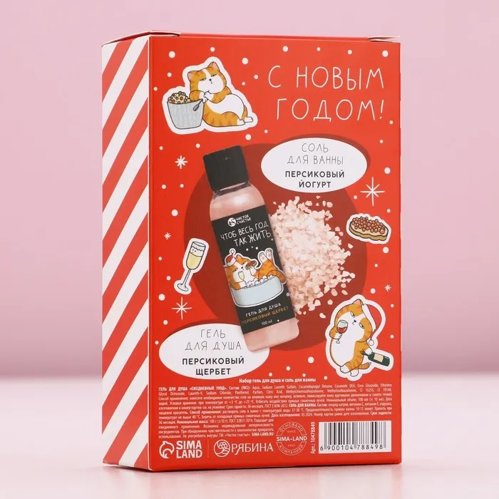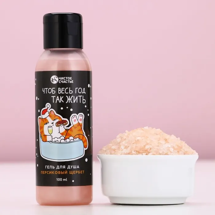 Подарочный набор новогодний «За нас с вами»: гель для душа 100 мл и соль для ванны 100 г, Чистое счастье — Характеристики