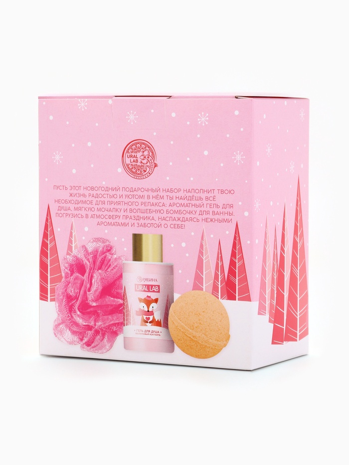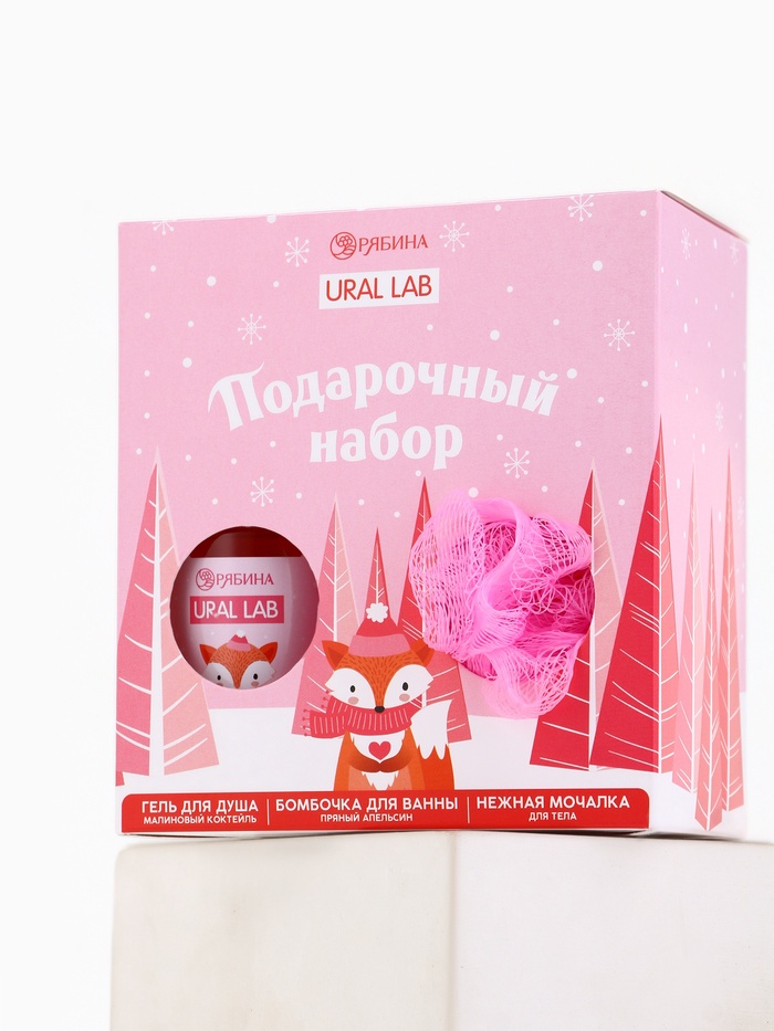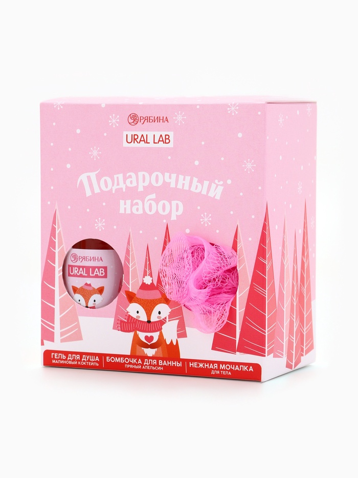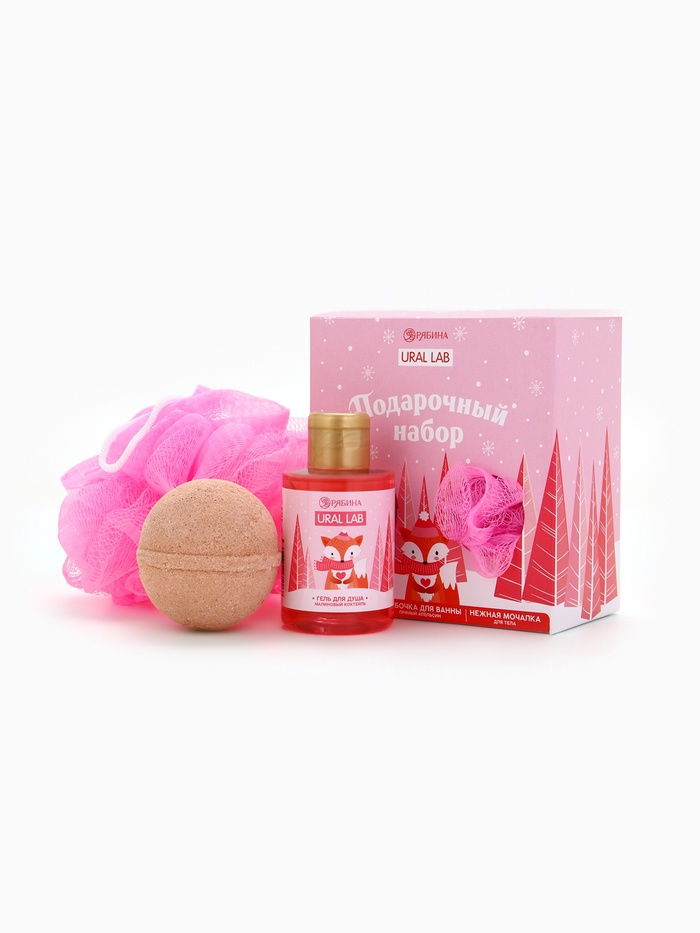 Подарочный набор новогодний женский «Лисёнок»: гель для душа 100 мл, бомбочка для ванны 130 г, мочалка для тела, URAL LAB — Характеристики