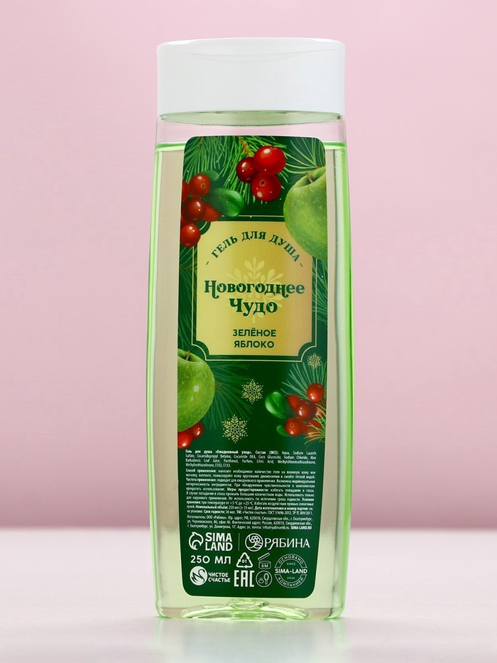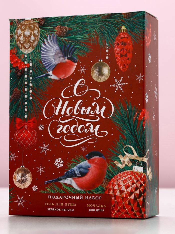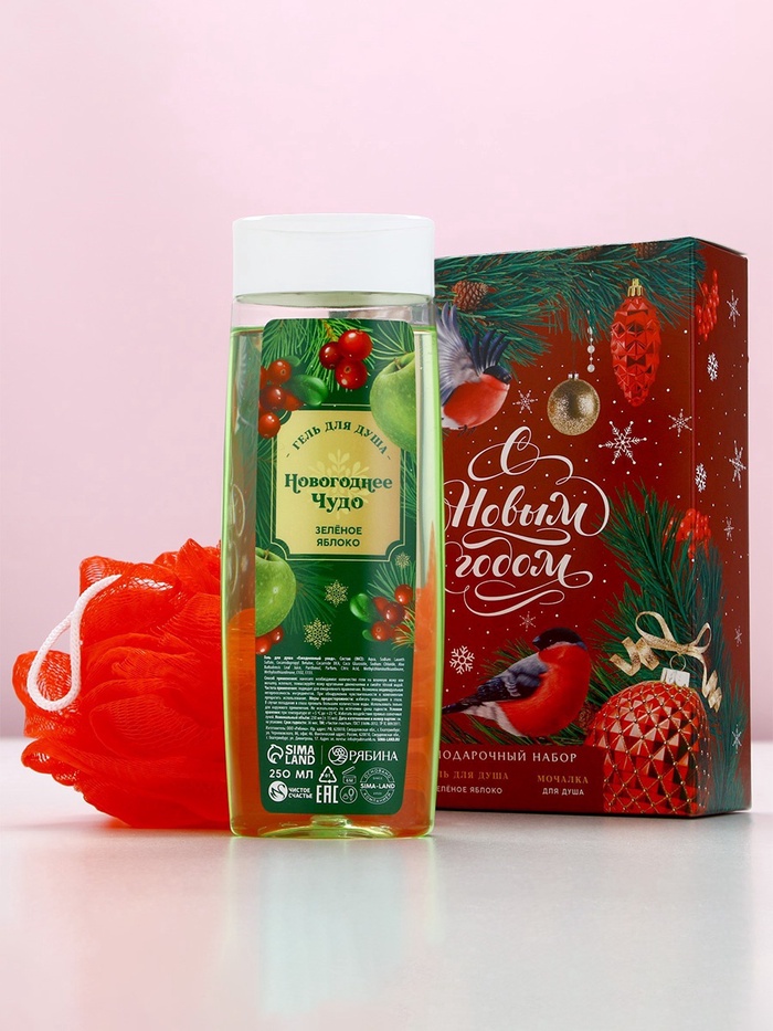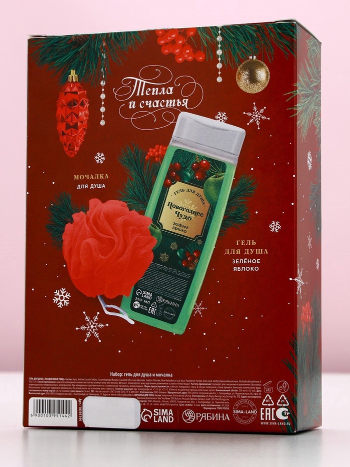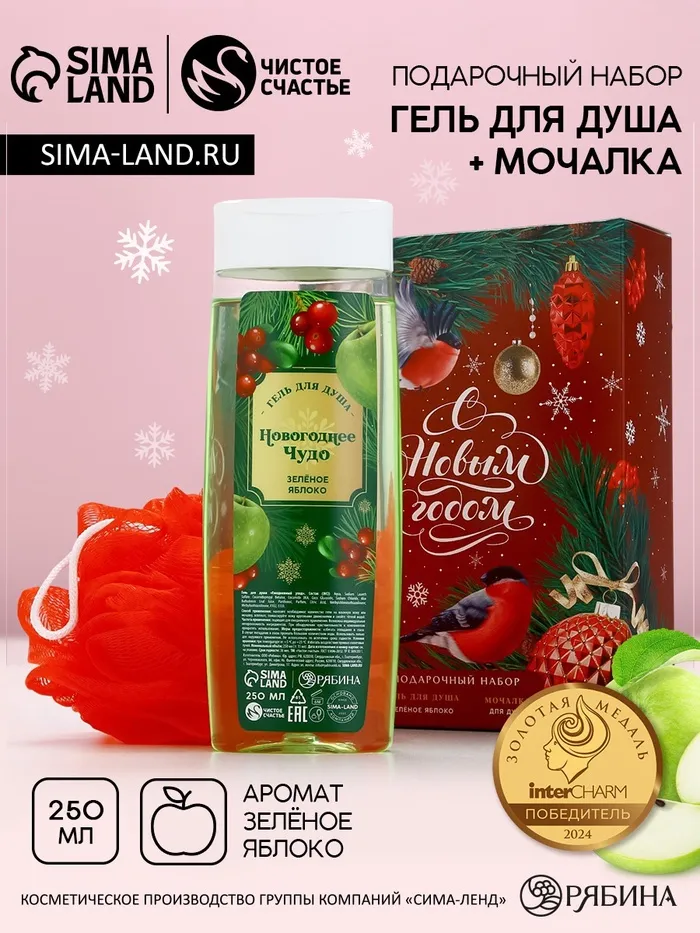 Подарочный набор новогодний женский «С праздником», гель для душа 250 мл и мочалка для тела, Чистое счастье — Характеристики