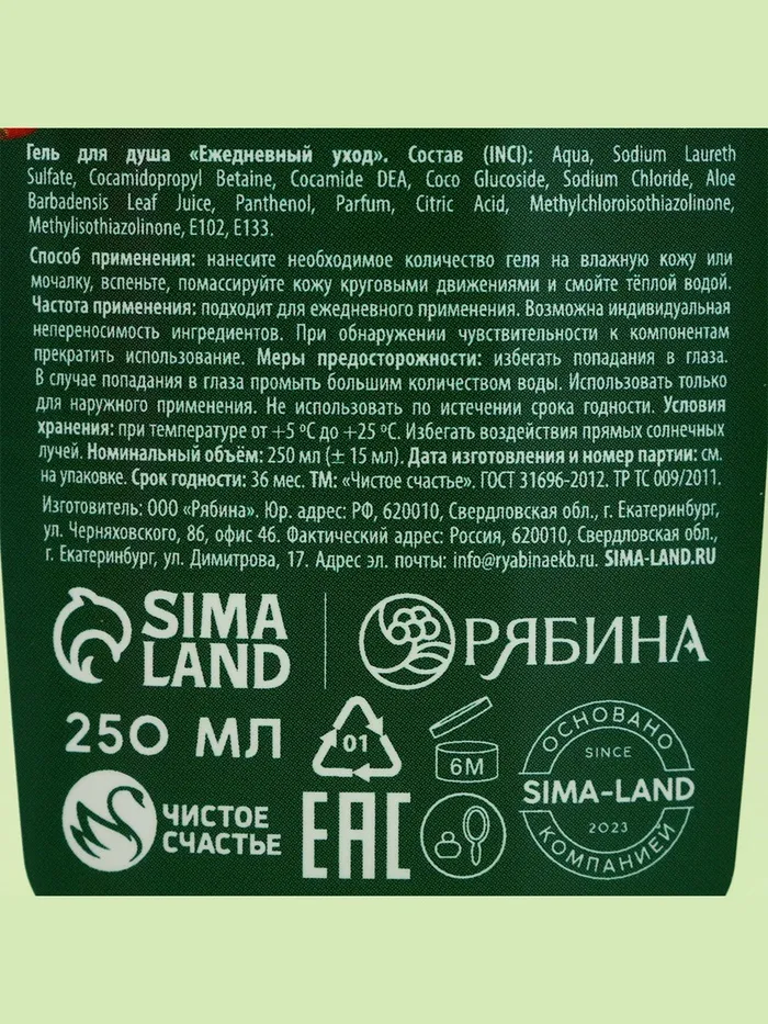 Составляющие набора: Гель для душа