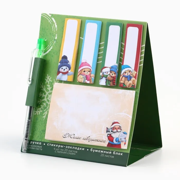 Подарочный набор новогодний «Зима подарит чудеса», ручка, стикеры для заметок, 20 листов — Характеристики