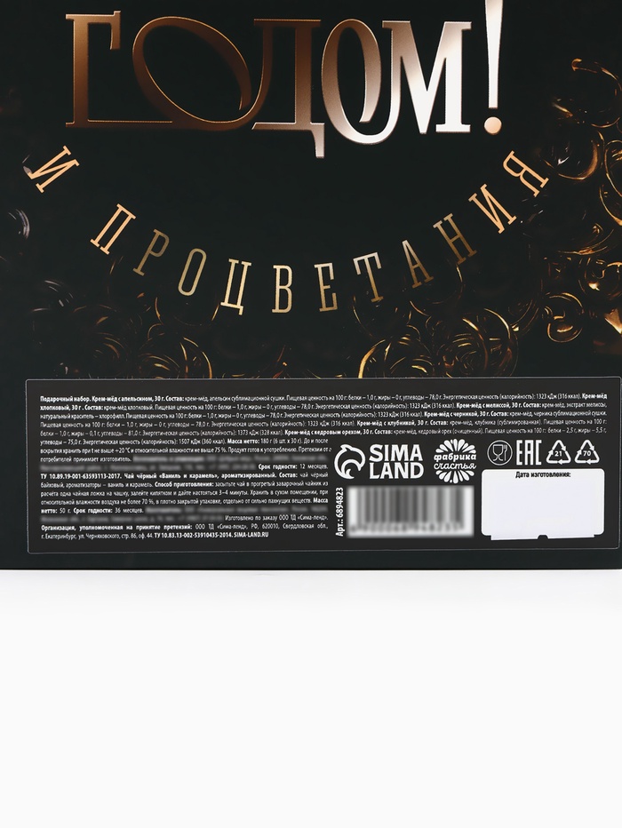 Подарочный набор новогодний «Золотого года»: чай чёрный, крем-мёд (6 шт.x30 г) — Характеристики