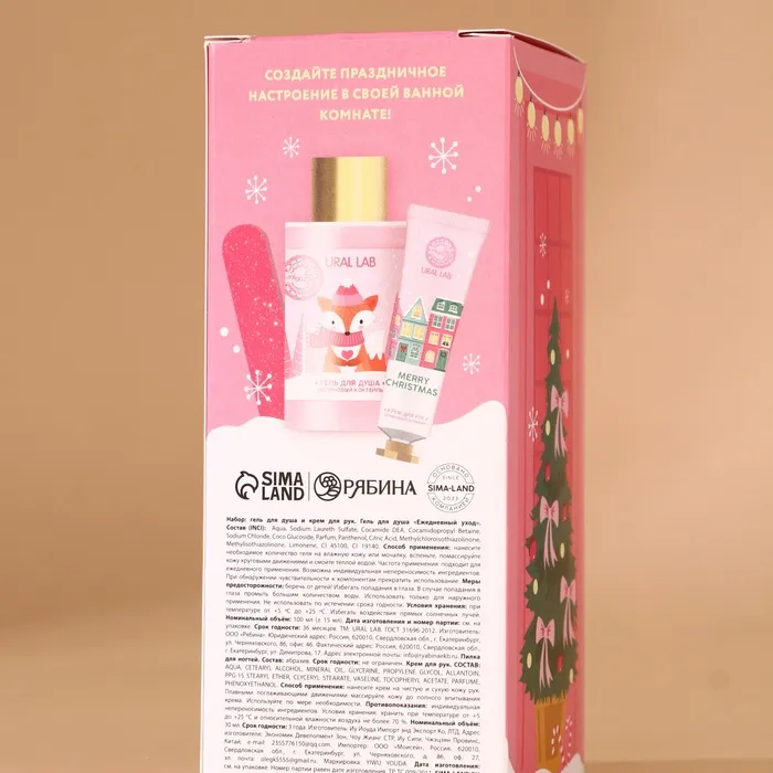 Подарочный набор «Новый Год», гель для душа 100 мл, крем для рук 30 мл, пилочка для ногтей URAL LAB — Характеристики