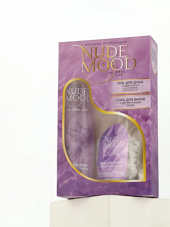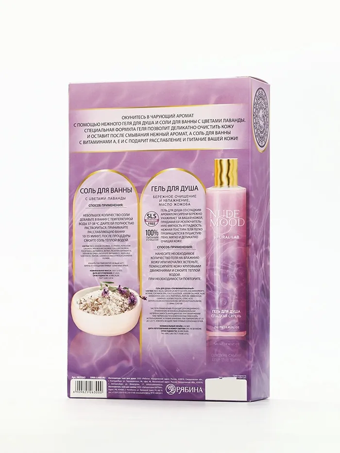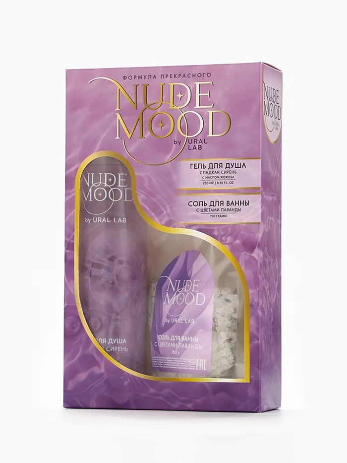 Подарочный набор NUDE MOOD, гель для душа 250 мл, аромат сирени и соль для ванны с лепестками лаванды 150 г — Характеристики