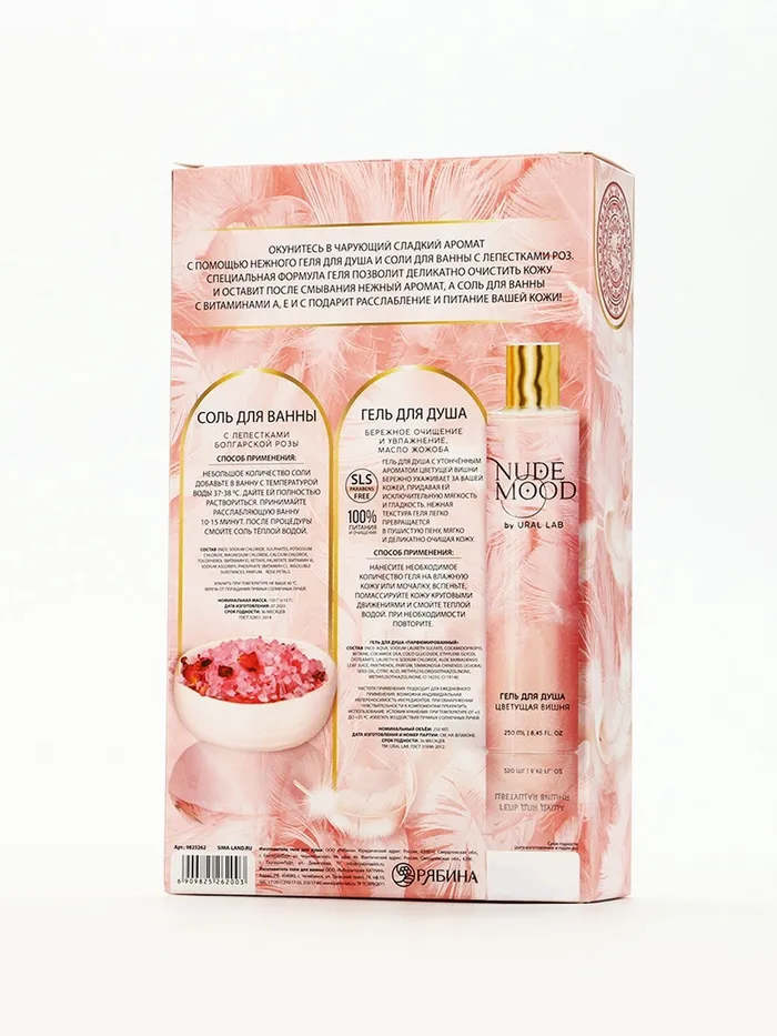 Подарочный набор NUDE MOOD, гель для душа 250 мл, аромат вишни и соль для ванны с лепестками розы 150 г, URAL LAB — Характеристики