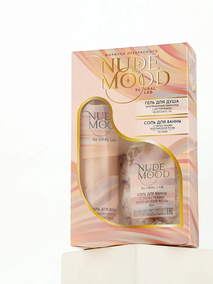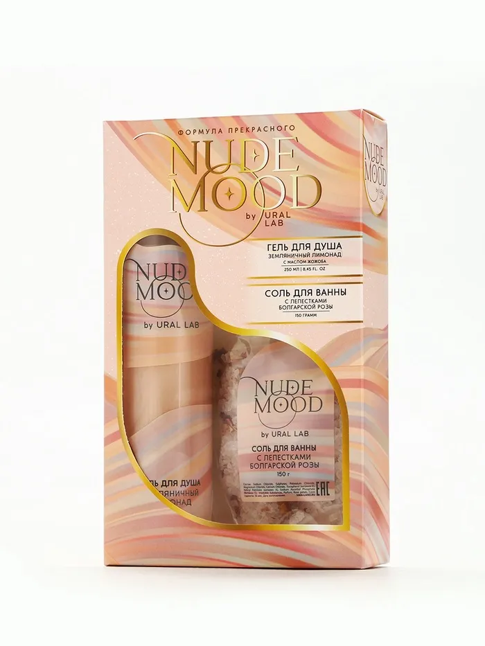 Подарочный набор NUDE MOOD, гель для душа 250 мл, аромат земляники и соль для ванны с лепестками розы 150 г, URAL LAB — Характеристики
