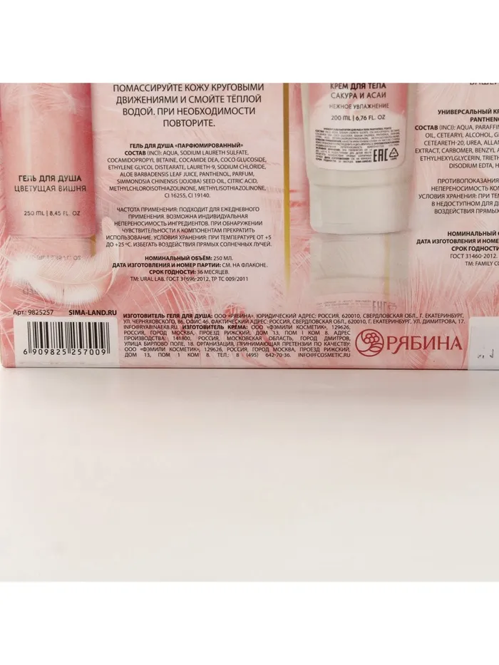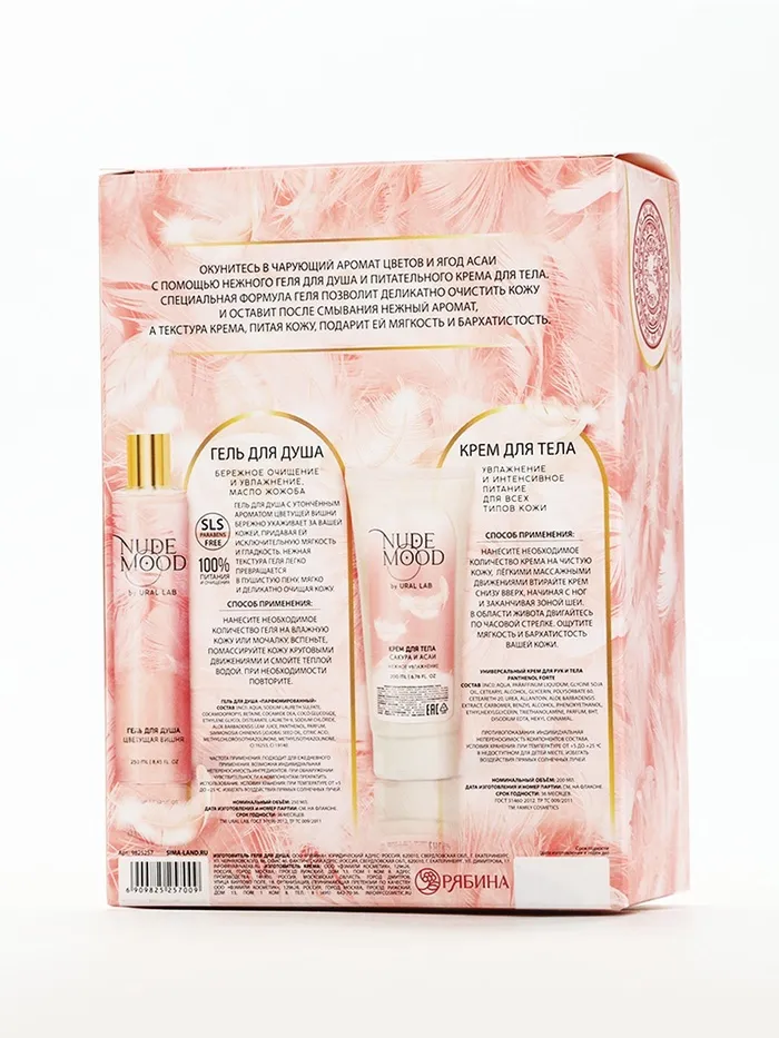 Подарочный набор NUDE MOOD, гель для душа 250 мл и крем для тела 200 мл, аромат вишни, сакуры и асаи, URAL LAB — Характеристики