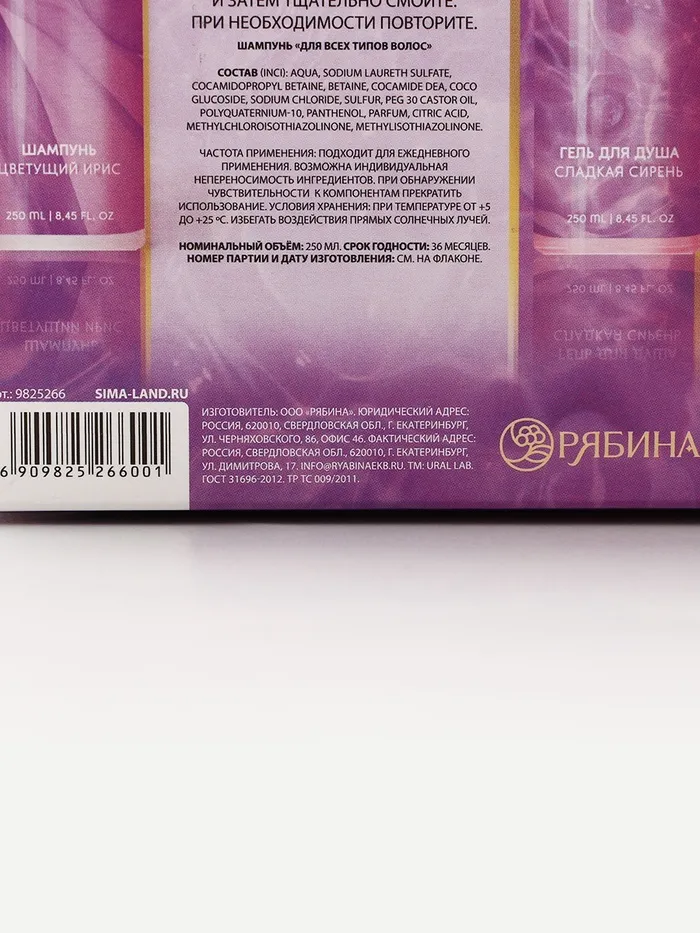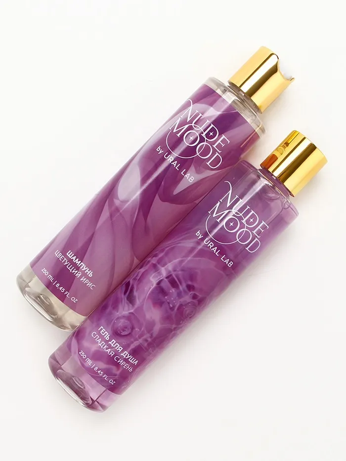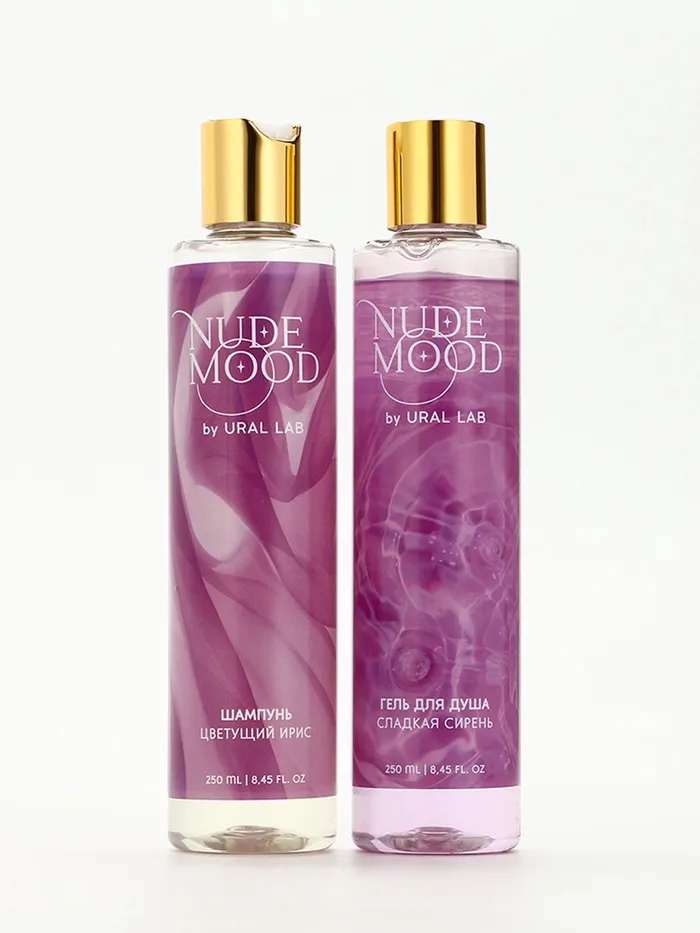 Подарочный набор NUDE MOOD, гель для душа и шампунь для волос, 2×250 мл, аромат ириса и сирени, URAL LAB — Характеристики