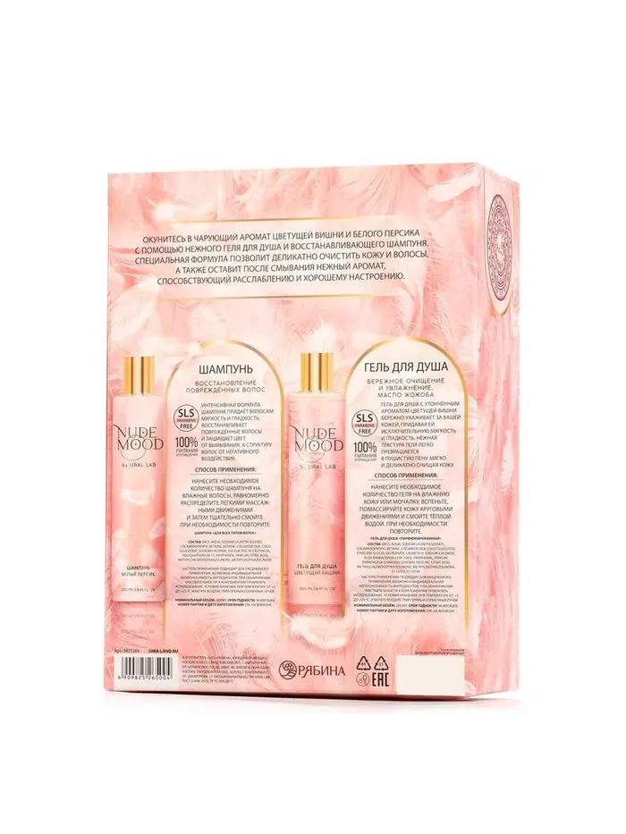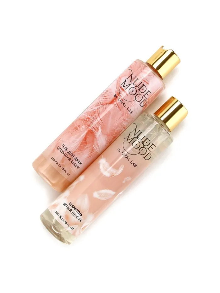 Подарочный набор NUDE MOOD, гель для душа и шампунь для волос, 2×250 мл, аромат персика и вишни, URAL LAB — Характеристики